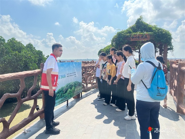 此外,活動當天還組織開展了“紅樹林之城”青春大使主題宣講活動,青春講師團講師王繼恩化身紅樹林宣傳導游,走進觀海長廊紅樹棧道為游客科普“什么是紅樹林”“紅樹林的作用”“湛江紅樹林的分布”等知識,讓游客對紅樹林有了更深刻的認識,對進一步提升廣大市民群眾對保護紅樹林的重要性、“紅樹林之城”建設的認識等具有重要意義。