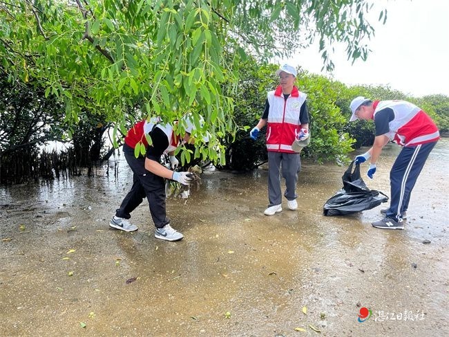 護綠行動中,志愿者們紛紛佩戴好手套、拿起垃圾袋、兩兩結對走進紅樹林,將散落在紅樹林中的垃圾清理掉,以志愿力量還紅樹林一個整潔、干凈的生長環境,為改善海洋生態環境貢獻青春力量。