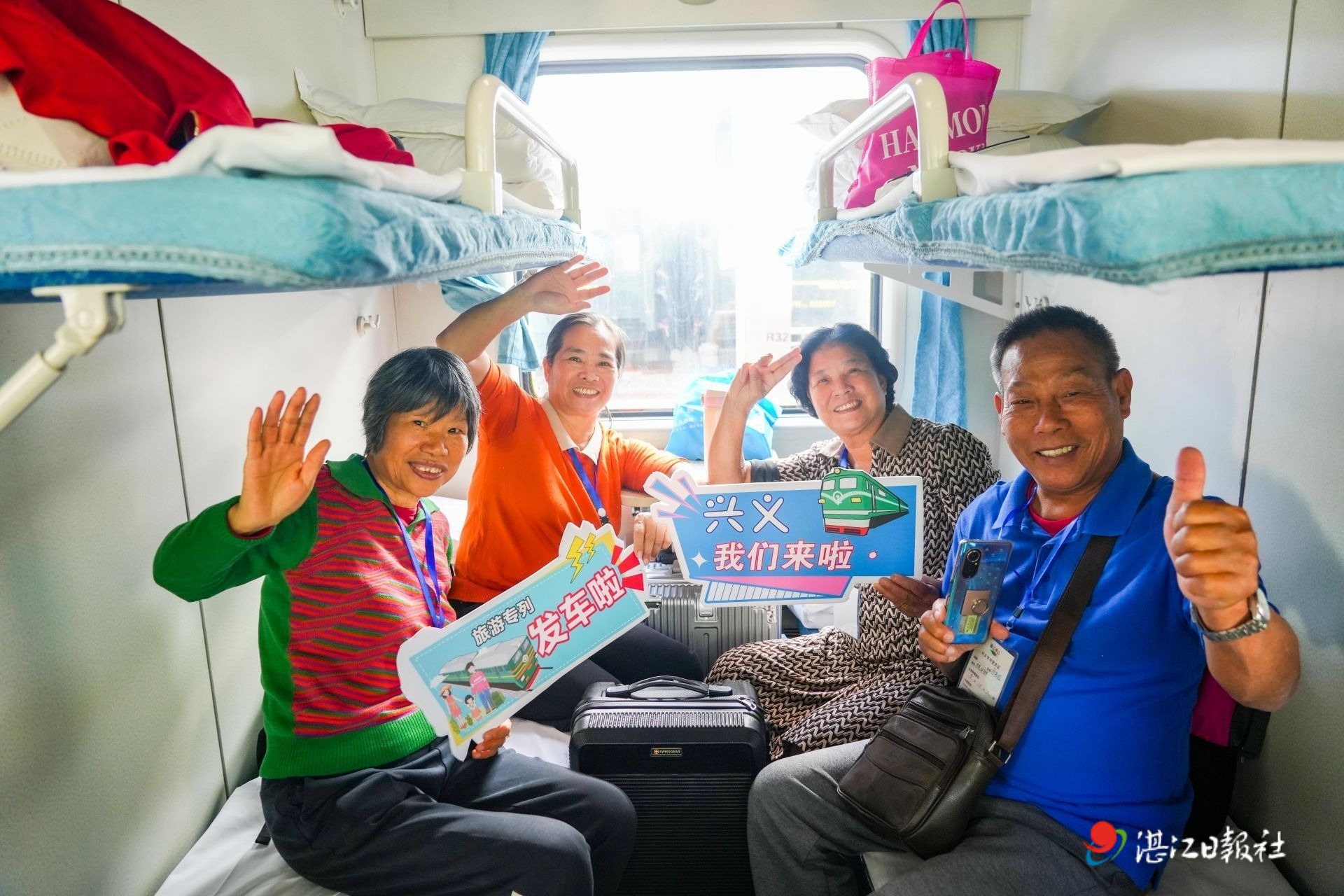 “鐵路專列是中老年朋友首選的旅游出行工具之一,這趟采用全列軟臥空調(diào)車廂的旅游列車對老年人非常友好。”專列跟車導(dǎo)游劉先生介紹道。該趟專列夕發(fā)朝至,從湛江始發(fā)一站直達(dá)興義,旅客們下車搭乘接駁車與景區(qū)無縫銜接。在4天的黔西南康養(yǎng)之旅中,游客們將前往萬峰林、馬嶺河大峽谷等風(fēng)景區(qū)感受貴州興義秀美風(fēng)光,再到貴州黔西南感受布依族風(fēng)情。“這樣的專列既省心又便宜,旅游景點還多,在車上睡一晚,醒來就能玩,這次興義之旅很是期待。”旅客梁土軒說。