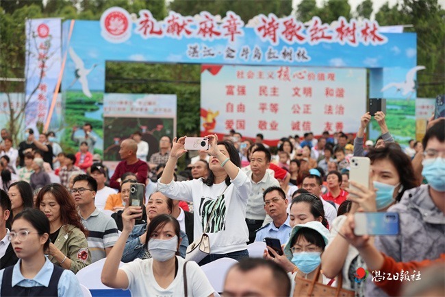 4月10日,由中共湛江市麻章區委宣傳部、廣州市白云區派駐湛江市麻章區對口幫扶協作單位組主辦的“禮獻麻章·詩歌紅樹林”詩歌節文藝活動在麻章區金牛島紅樹林舉行。