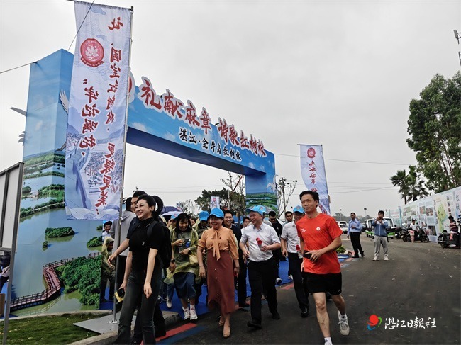 活動以文藝匯演拉開序幕,舞蹈《紅樹林印象》讓人仿佛置身于紅樹林之中,展現了紅樹林的獨特魅力;歌曲《紅樹林在歌唱》用聲音匯聚成一首紅樹林的贊歌;歌伴舞《紅樹林的詩行》讓人感受到詩意般的紅樹林之美......匯演最后以湛江日報社中老年合唱團帶來歌曲《湛江紅樹林》結束,觀眾們意猶未盡,掌聲雷動。匯演過程中舉行了紅樹林共建保護聯盟啟動儀式,現場還設置了麻章美食、非遺、禁毒、燕塘企業、廣州銀行等宣傳展位,同時設置了安全生產、禁毒、掃黃打非知識有獎問答活動。文藝匯演結束后,表演者與群眾一同參與來回路程約5公里的徒步活動,沿途欣賞白鷺翩躚的紅樹林美景。