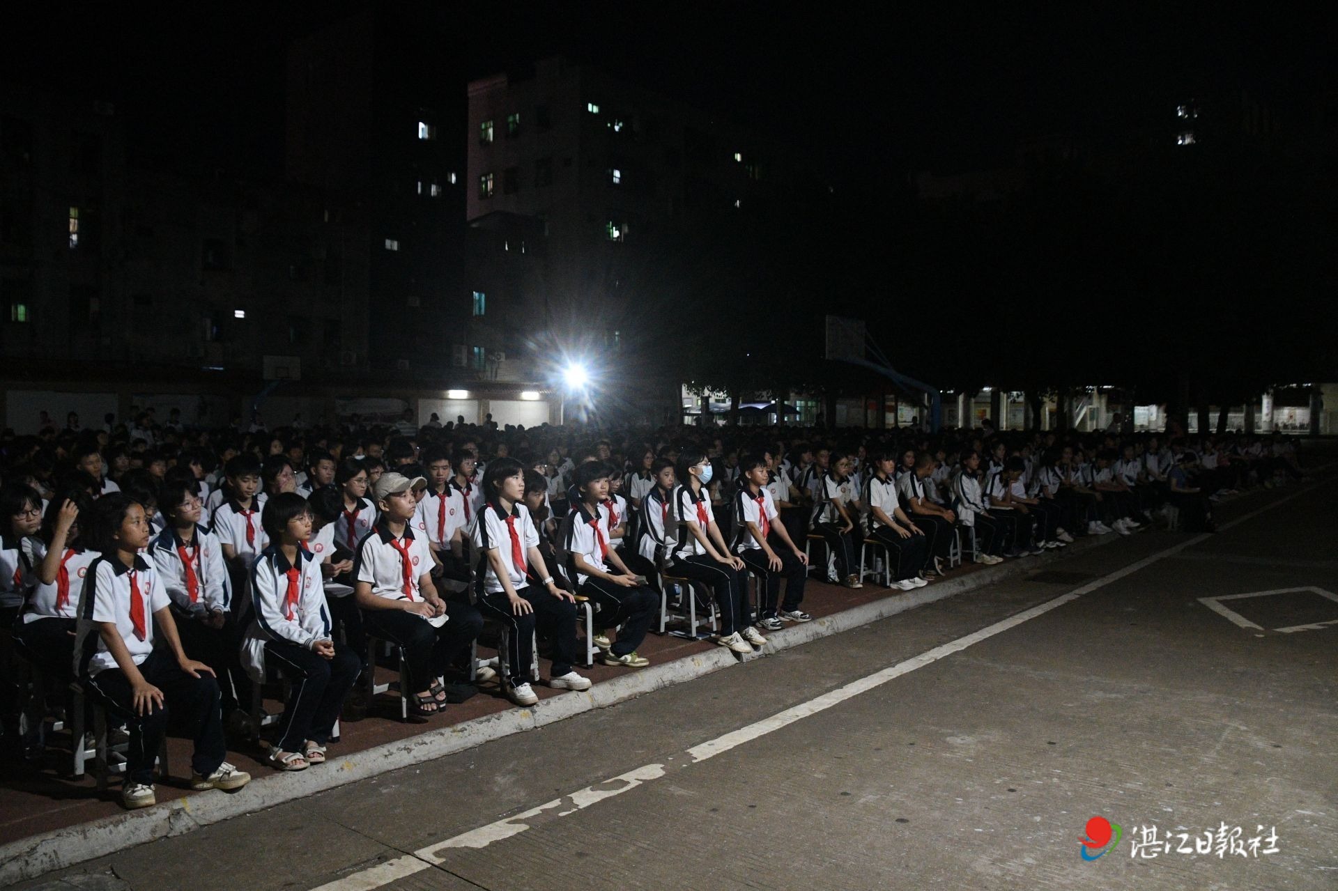 6月17日晚,夜幕降臨,微風習習,徐聞縣第二中學的操場上燈光亮起,2000多名初中學生坐在小板凳上,認真聆聽徐聞法院副院長馮凱捷講授的一堂精彩生動的法治教育講座。
