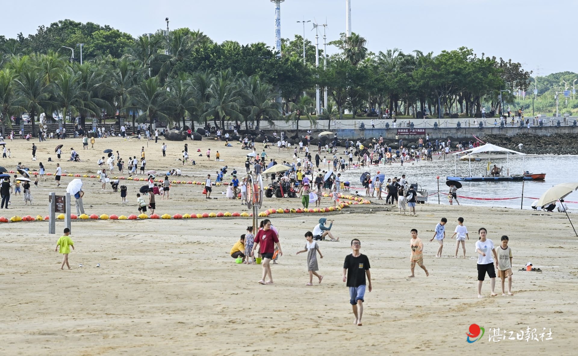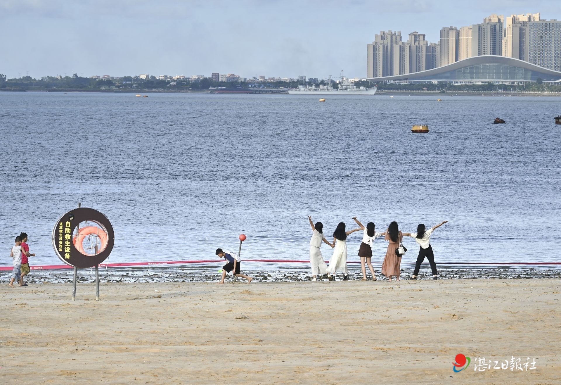 隨著暑假旅游旺季來臨,赤坎金沙灣游客激增,成為市民游客爭相打卡的熱門景點。7月10日,記者前往金沙灣海濱浴場,還沒走近就聽見一片人聲鼎沸。遠處藍天碧海交相輝映,近看沙灘平整潔凈。游客們或漫步在沙灘上,或在游泳區嬉戲玩鬧,感受著夏日的清涼和歡樂。“孩子們很喜歡在這邊玩,填了新沙后沙灘變得更舒服、更安全了,為工作人員點贊!”市民李女士說。