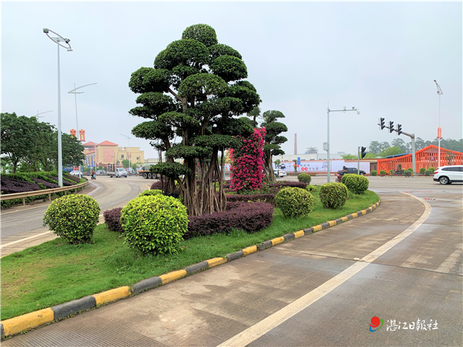 在栽種的植物上,渝湛高速選用常綠、易養活、少病蟲的品種,種植了宮粉紫荊、雞蛋花等喬木和簕杜鵑、非洲茉莉、紫蟬、紅車等灌木共6200余株,輔以彩霞變葉木、清香木、龍船花、野牡丹、朱蕉等地被6400余株點綴,鋪種草皮5088㎡。每一處綠化設計錯落有致、簡單舒適,營造出了“粵西明珠、碧海藍天”的景觀空間效果,讓行駛經過的司乘均有一種“車在路上走,人在畫中游”的愉快出行體驗。