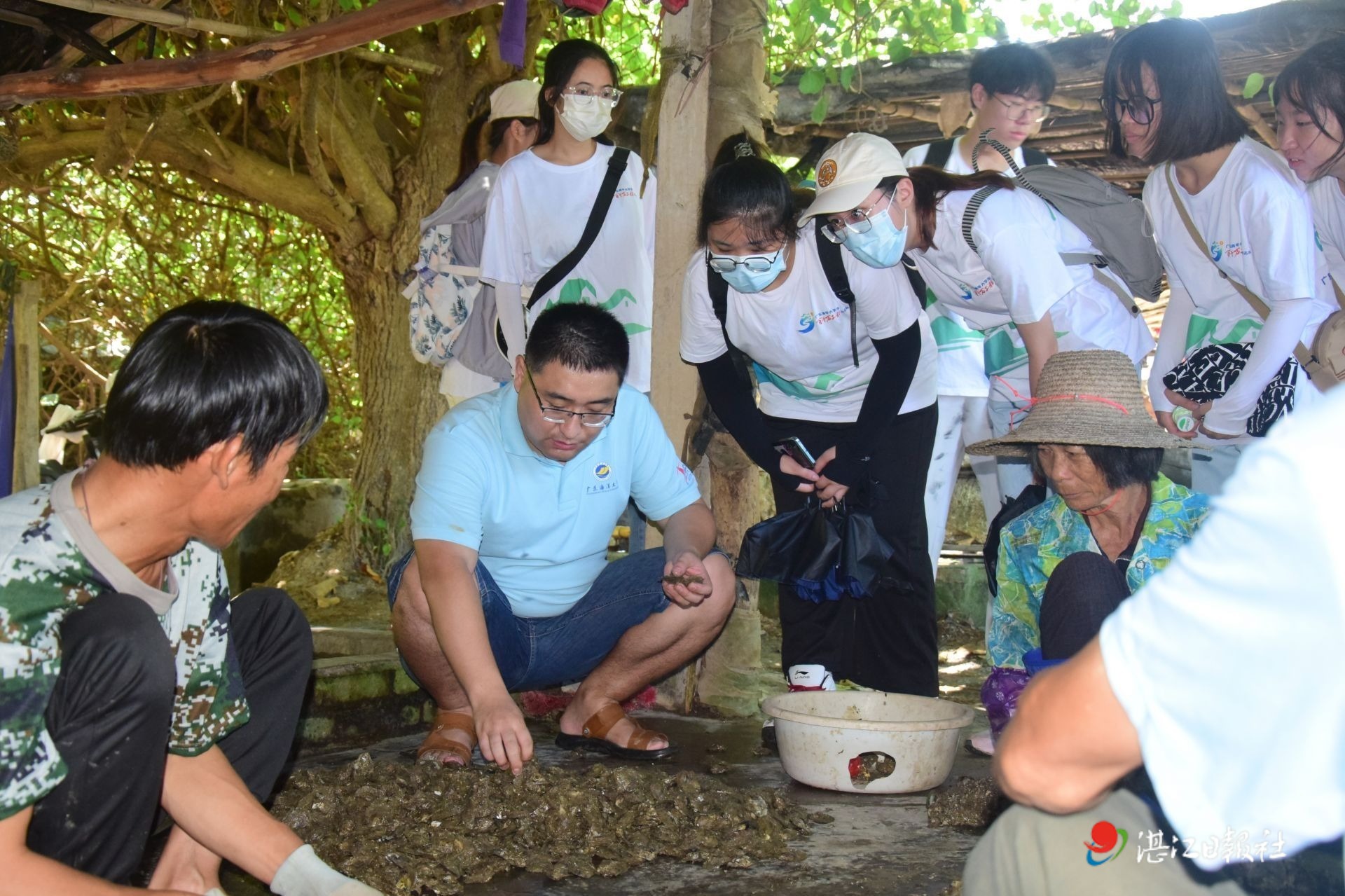 雷州海水珍珠科技小院南珠先鋒實(shí)踐團(tuán)向貝農(nóng)了解“海選2號(hào)”品系生長(zhǎng)狀況。通訊員肖穎 攝