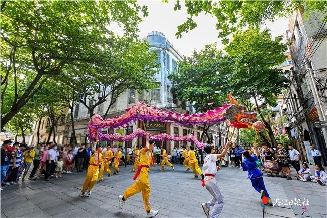 在赤坎老街,“調順網龍”展示展演。記者張鋒鋒 攝