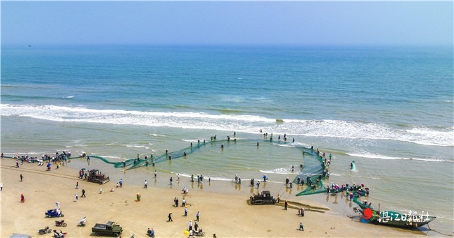 南三島拉大網熱鬧非凡。 記者張鋒鋒 攝