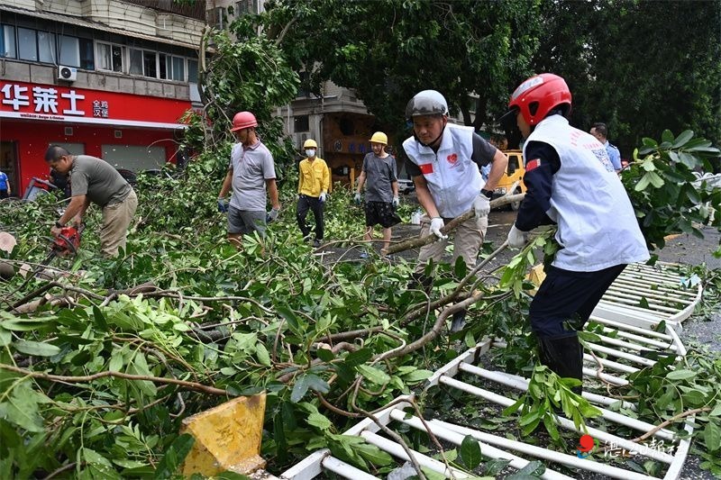 9月7日, 霞山區(qū)志愿者清理倒伏樹(shù)木。記者張鋒鋒 攝