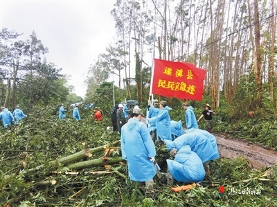 遂溪縣民兵應(yīng)急連清理路障。 湛江軍分區(qū)供圖