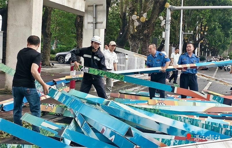 9月7日,工作人員清理位于赤坎區(qū)人民大道北受損的廣告牌。記者劉冀城 攝