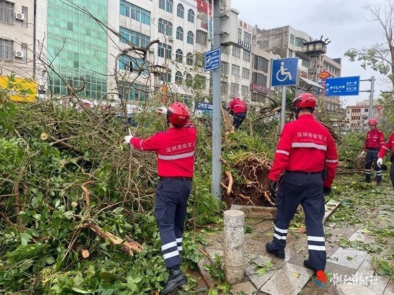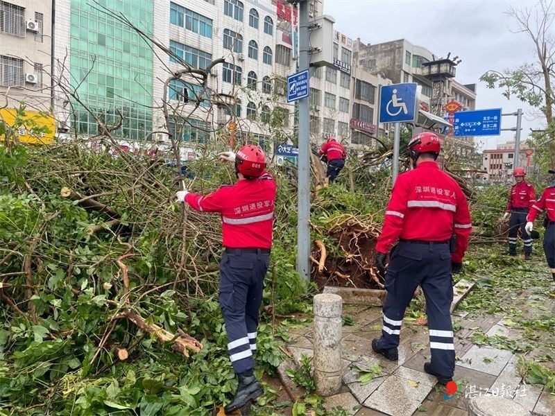 9月7日,深圳退役軍人紅星應(yīng)急救援隊(duì)在徐聞德新一路清理殘枝斷木。記者歐陽(yáng)澤 攝