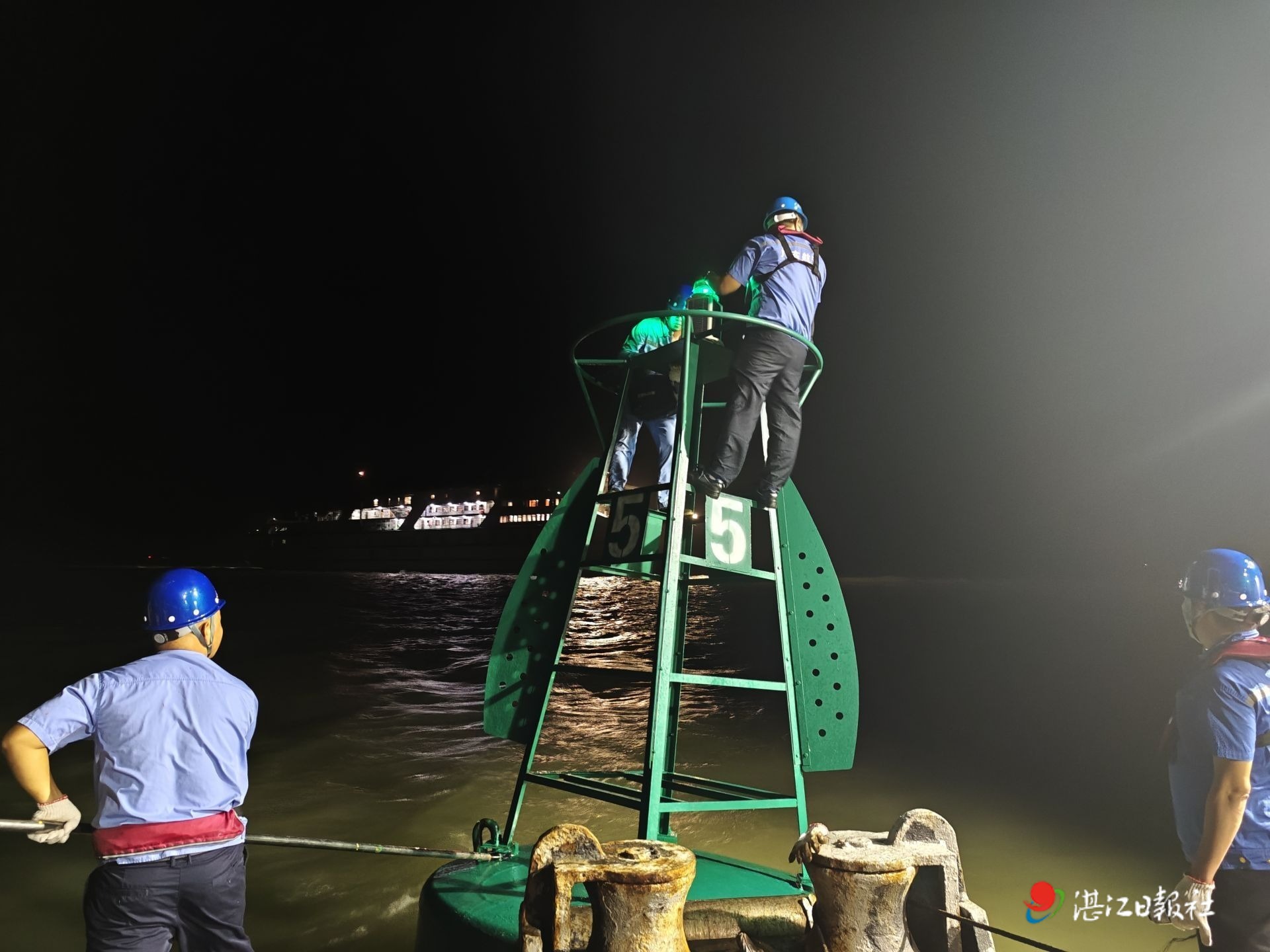 9月7日,省粵西航道事務中心工作人員連夜搶修航標