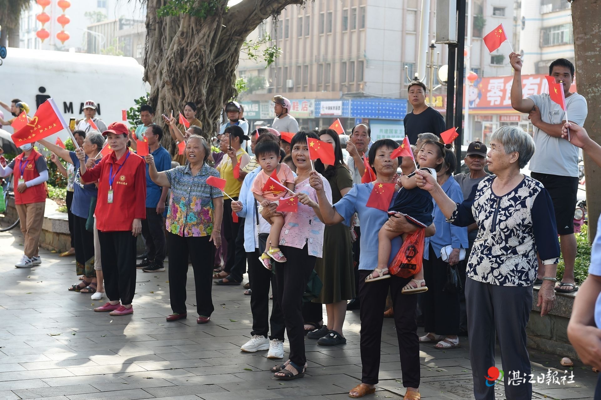 “你們辛苦啦!感謝你們,一路順風。”隨著消防指戰員們的車隊緩緩開出,自發前來的群眾紛紛熱情向車內“隔空喊話”。9月13日上午,歡送防御臺風“摩羯”救援隊活動儀式在徐聞文化廣場開展,湛江市副市長孔海文代表市委市政府向廣東省消防救援總隊、國家消防救援局廣東機動隊贈送錦旗致謝。現場數百名干部群眾夾道歡送消防指戰員們離開,為他們送出熱烈的掌聲和祝福。