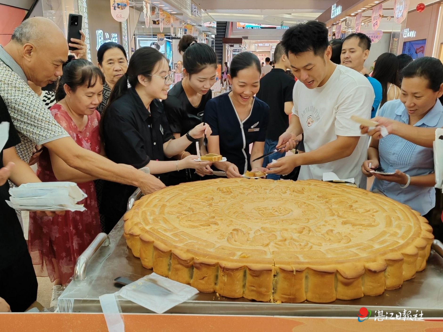 當(dāng)晚也有燈籠、香囊DIY等線下活動,向市民提供各種材料和工具,由他們親手制作完成后,可以帶走自己的作品,作為中秋佳節(jié)的紀(jì)念。嘉賓還與市民共同切月餅,祝愿大家中秋快樂,生活幸福美滿。17日晚驚艷亮相的蛋黃蓮蓉餡大月餅,直徑1.1米,重達(dá)180斤,寓意團(tuán)圓美滿,生動展現(xiàn)了“鮮美湛江”的風(fēng)采和魅力。現(xiàn)場觀眾一起分享美味的月餅,從傳統(tǒng)美食中感受中秋節(jié)慶文化,其樂融融。