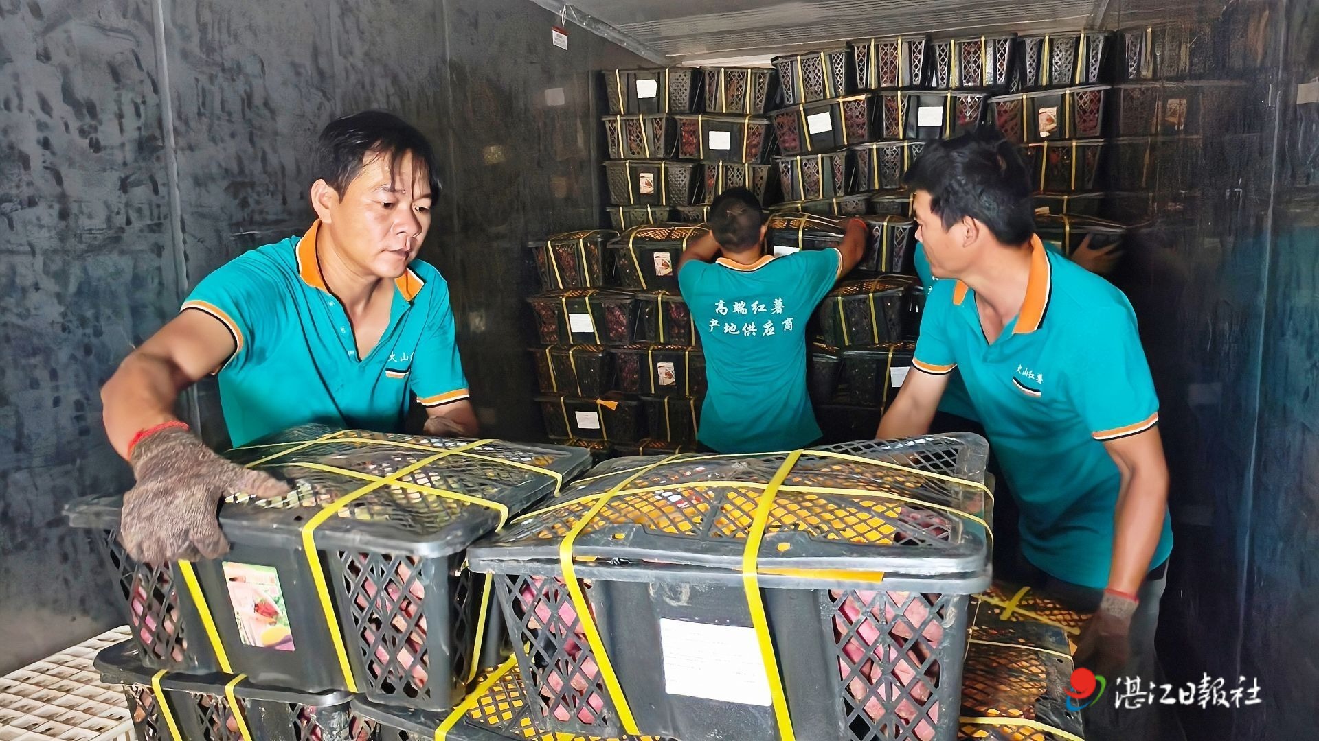 “火山紅薯香飄馬來西亞,讓世界愛上鮮美湛江!”9月23日,貼著紅色橫幅的大貨車滿載著25噸火山紅薯,緩緩駛出遂溪縣洋青鎮的廣東佳淳農業科技有限公司工廠,奔向數百公里之外的深圳,在深圳辦理完出關手續后,將通過海運抵達馬來西亞。這是續出口加拿大、美國、澳大利亞、新加坡等國家之后,火山紅薯再次走向國際餐桌。