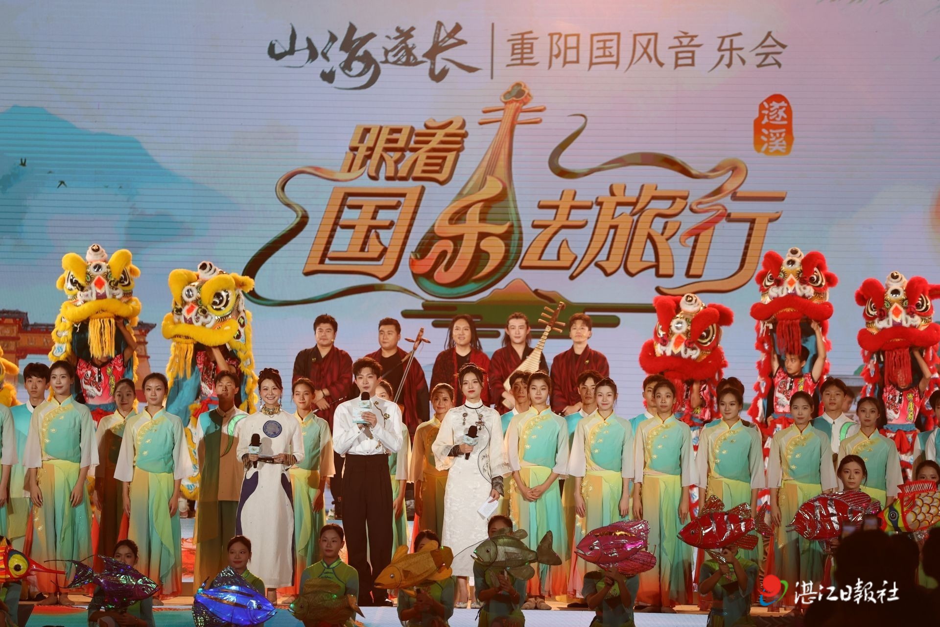 當晚,廣東衛(wèi)視《國樂大典》第四季《跟著國樂去旅行》系列節(jié)目將走進湛江遂溪。國樂藝術家方錦龍、網(wǎng)紅美聲歌手上上、中國內地男歌手東山少爺、青年舞蹈家譚均元等藝術大咖紛紛登場,為觀眾們獻上了一場精彩的文化視聽盛宴。本次音樂會以“國樂+文旅”為核心模式,采取“線上和線下”相結合的融媒體制作手段,一系列節(jié)目展示遂溪的文旅特色和長壽文化,通過“百歲重陽節(jié)”這一話題,將國風音樂和當?shù)亻L壽文化、醒獅文化、游魚文化結合,通過重陽“百歲節(jié)”將長壽文化轉化為城市 IP,充分利用自然和產(chǎn)業(yè)優(yōu)勢,深度展現(xiàn)遂溪的獨特魅力。