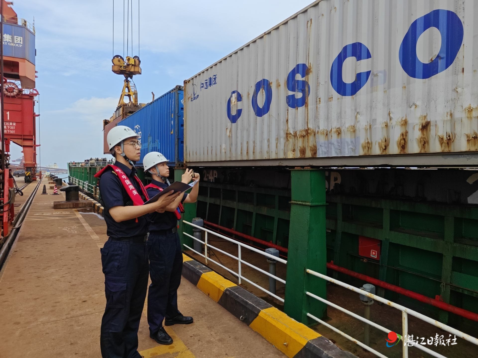 10月31日,裝載著353標(biāo)箱貨物的“船問(wèn)網(wǎng)101”輪,在湛江海關(guān)所屬霞山海關(guān)關(guān)員的監(jiān)管下,緩緩駛離湛江港寶滿集裝箱碼頭前往海南洋浦港。據(jù)悉,該輪搭載了外貿(mào)出口貨物涂布白卡紙、玻璃瓶、聚丙烯和內(nèi)貿(mào)貨物豆粕、石英砂等。