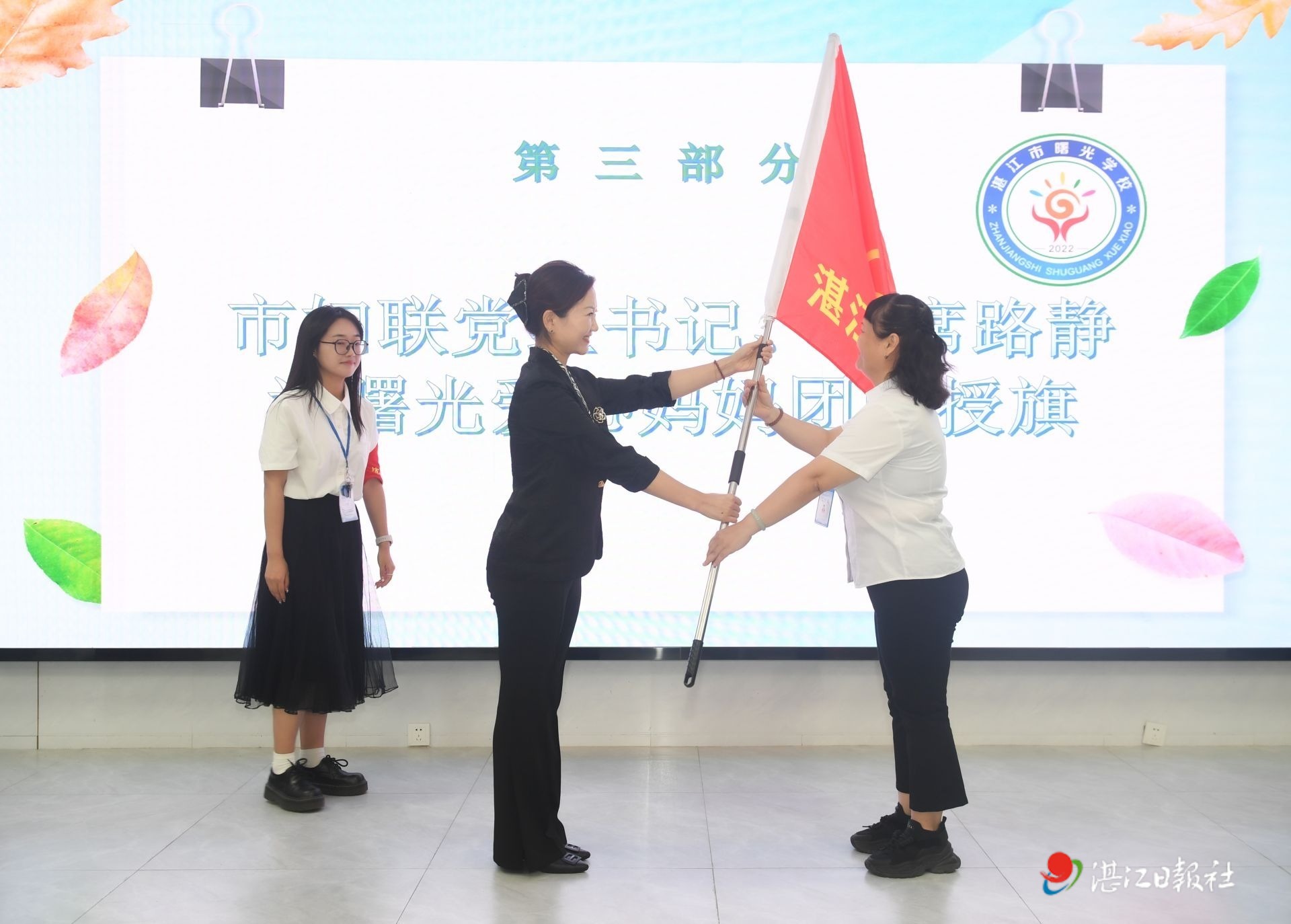 向曙光愛心媽媽團隊授旗。