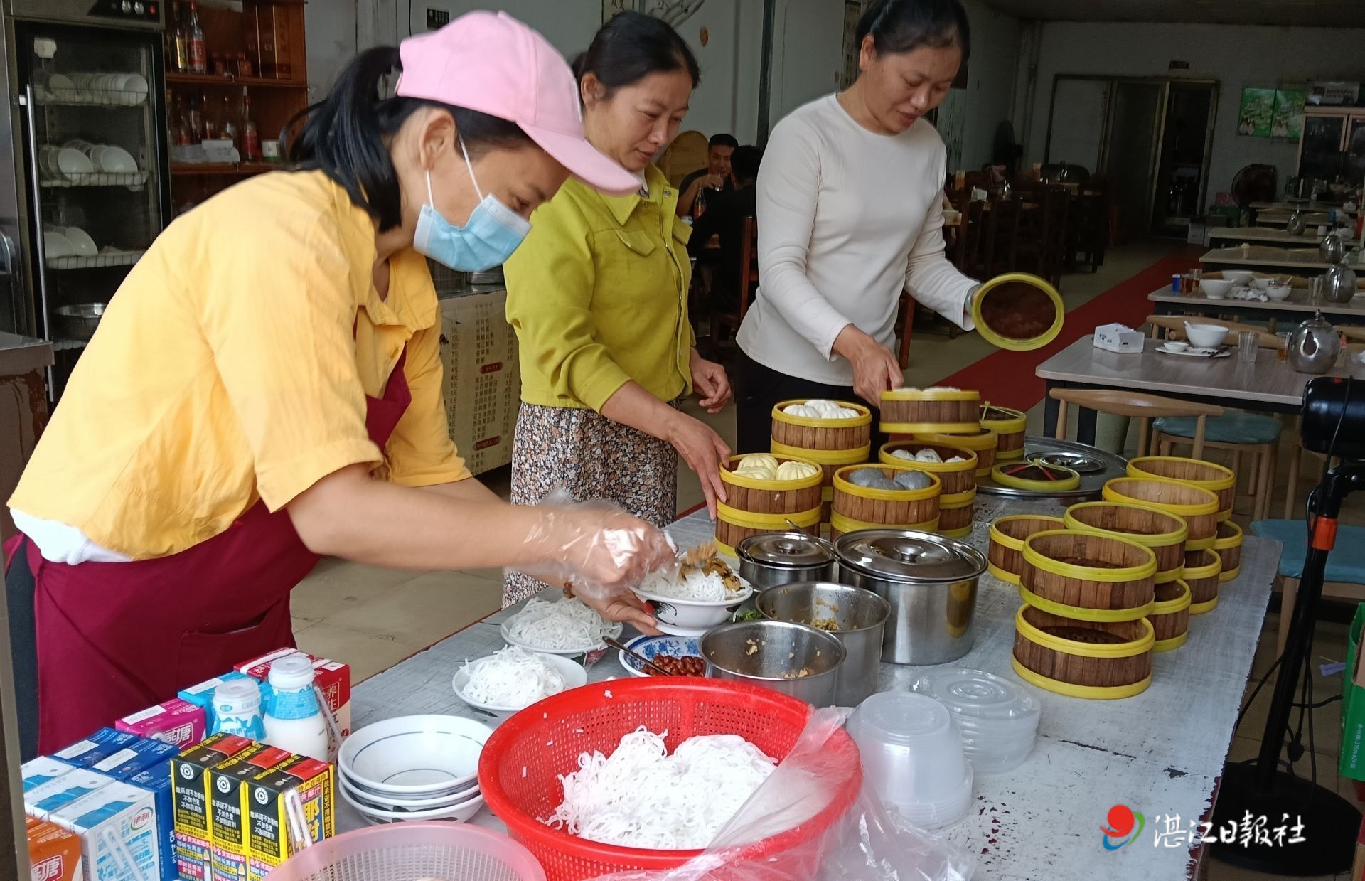 12月6日,記者在徐聞街頭看到,一些賣腌粉的攤販,裝滿一竹籃米粉,整整齊齊擺放著,引來許多食客。在徐聞城區東平路的一家本地羊粥店的腌粉攤,記者看到來往的食客絡繹不絕,有些食客是老顧客了,吃一碗不夠還要來一碗,直夸好吃,一些食客還打包回家。