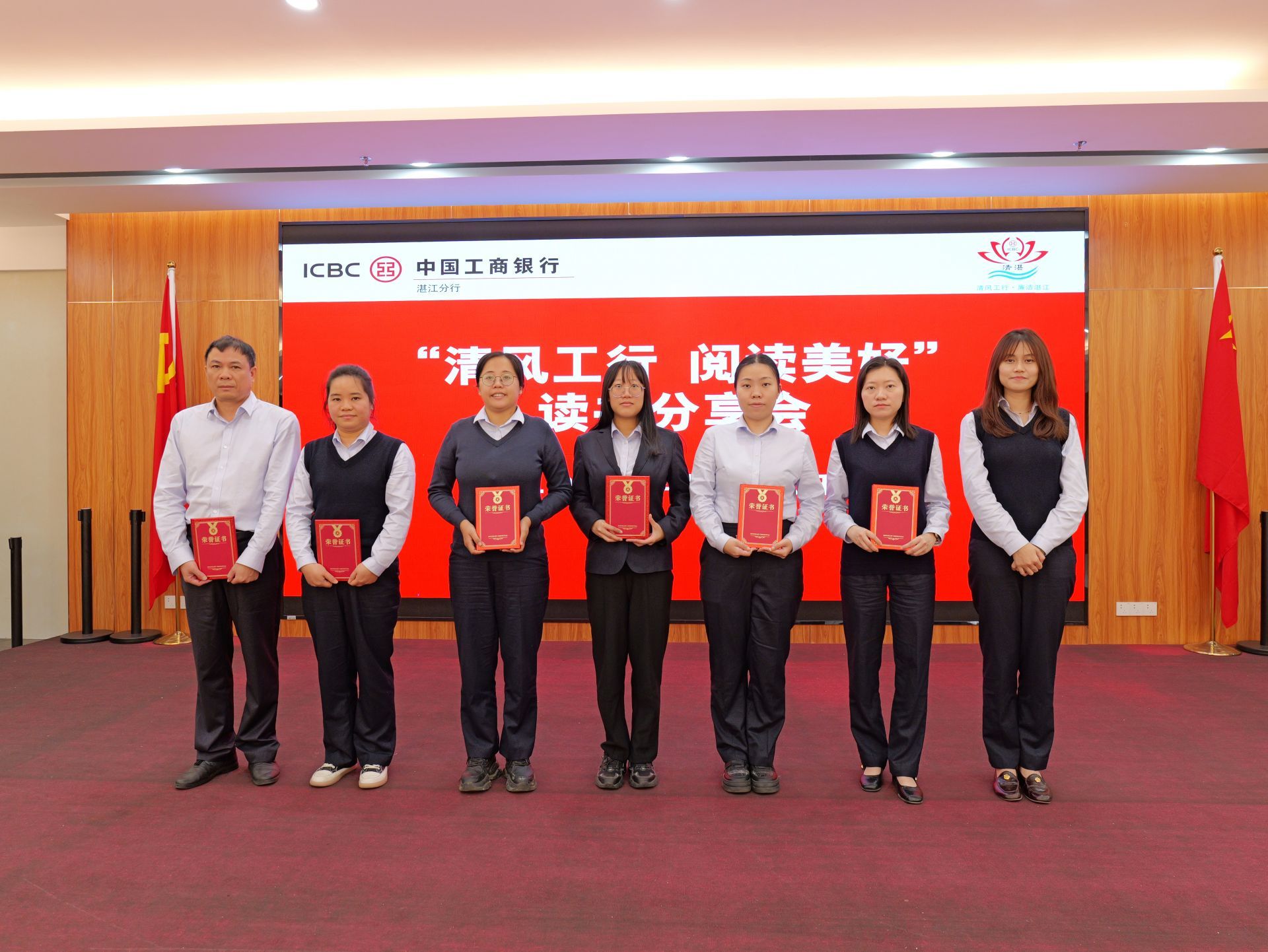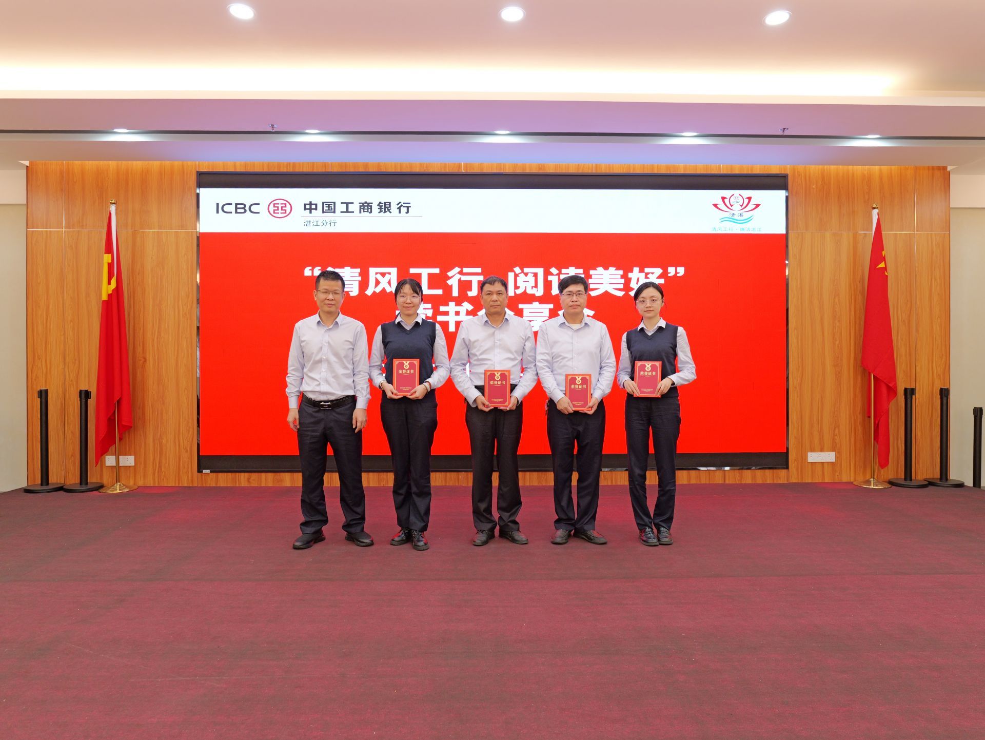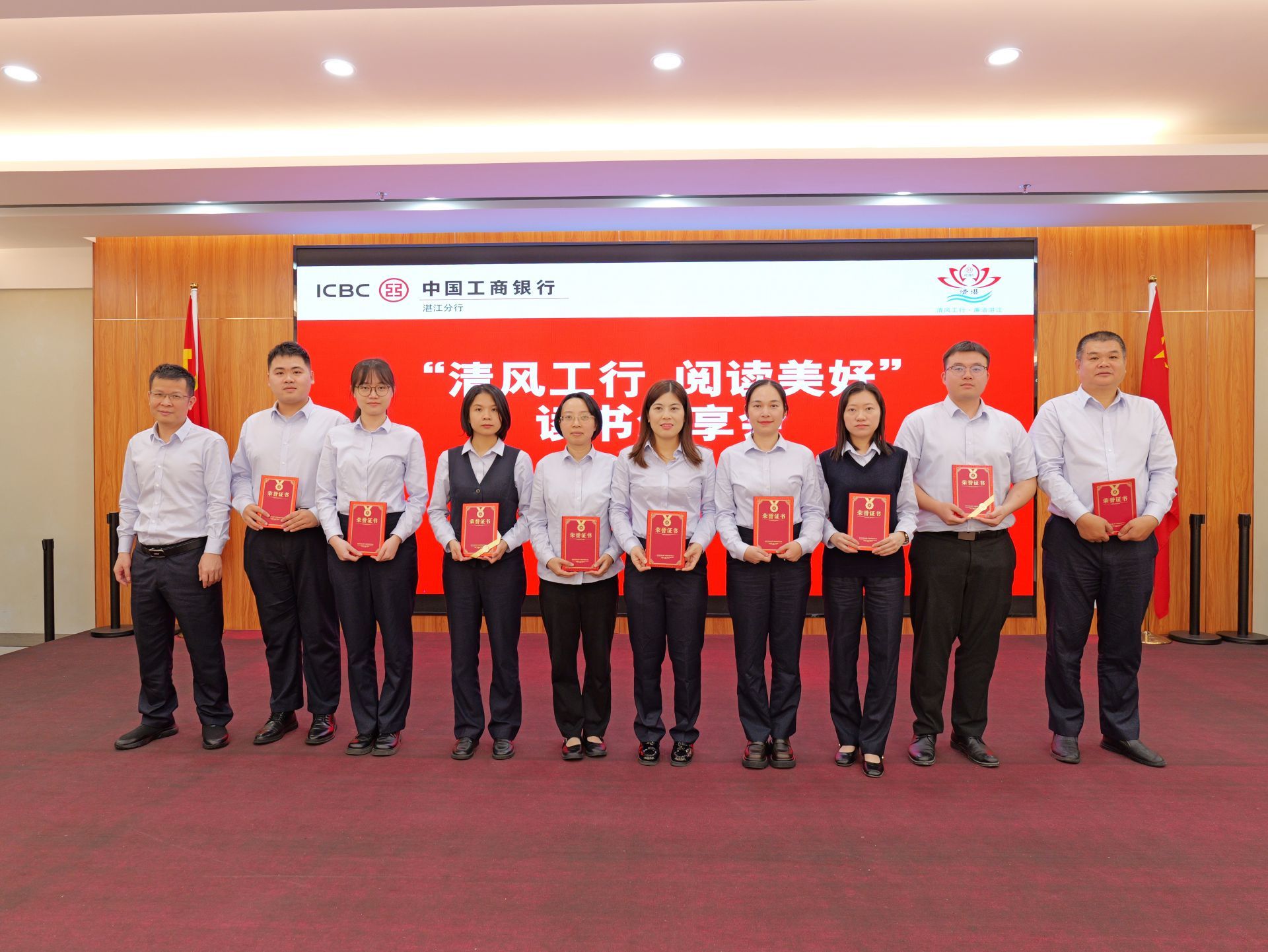 活動最后,該行向基層員工贈送了廉政書籍,并對“清湛”廉潔文化品牌形象標識獲獎人員、“清湛”廉潔文化品牌形象宣傳口號獲獎人員以及“黨紀·清廉”主題征文獲獎人員頒獎。與會人員紛紛表示,將以此次活動為契機,進一步加強學習、提升自我,為推動“清風工行”建設和“清湛”廉潔文化品牌建設以及分行高質量發展貢獻自己的力量。