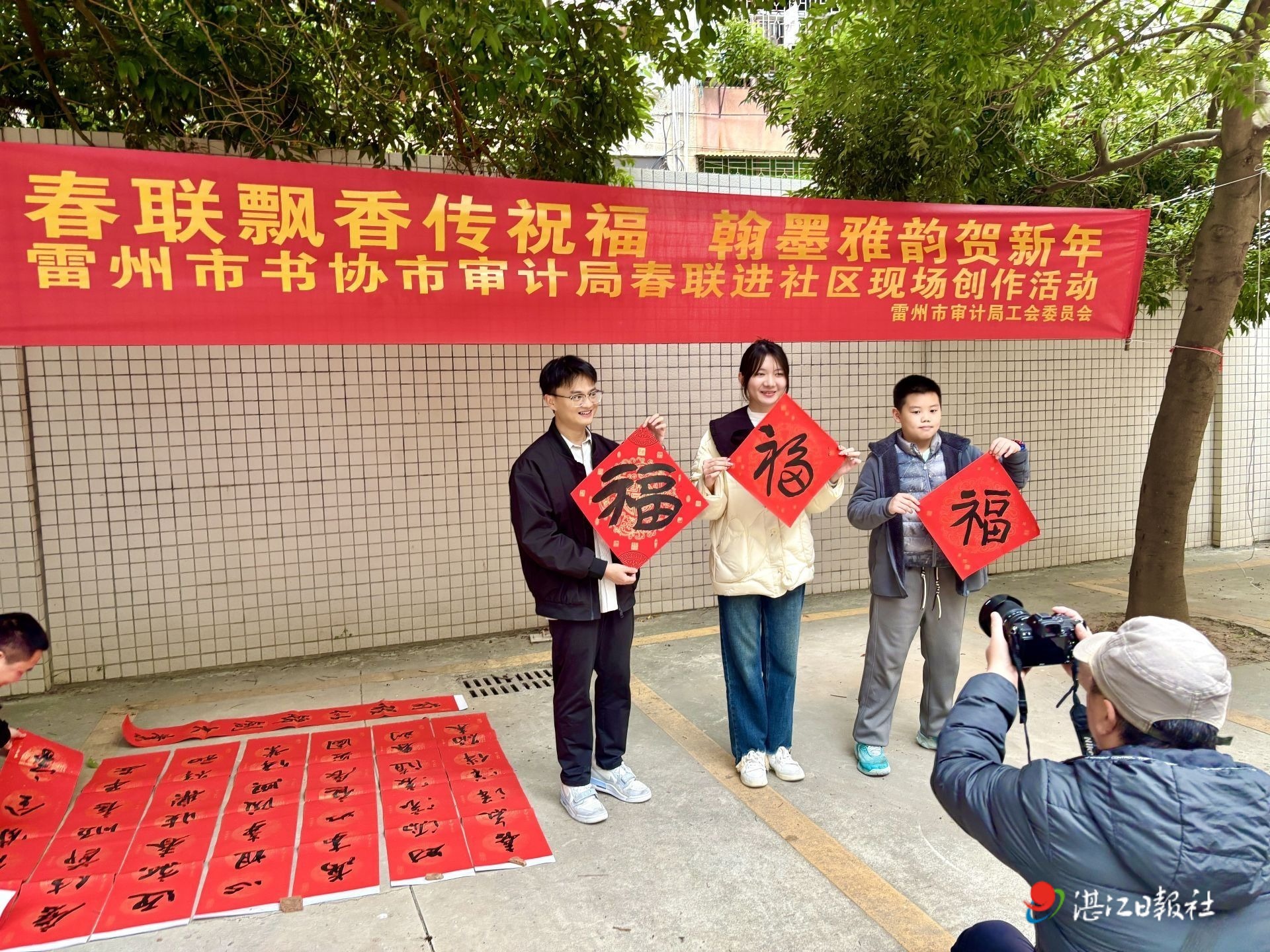 活動不僅得到了干部職工的熱烈響應,也吸引了周邊社區居民踴躍參與。大家手捧著墨香四溢的春聯和“福”字,臉上洋溢著幸福的笑容。雷州市書法家協會負責人表示,此次活動既弘揚了中華優秀傳統文化,也通過一幅幅春聯傳遞了對新春佳節的美好祝愿,真正讓傳統文化“飛入尋常百姓家”。