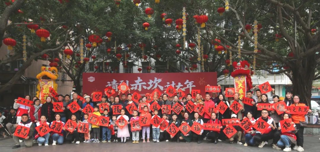 1月22日,赤坎區在南橋街道百姓村了舉辦了2025年“我們的節日——春節·古埠春暖”贈春聯活動。