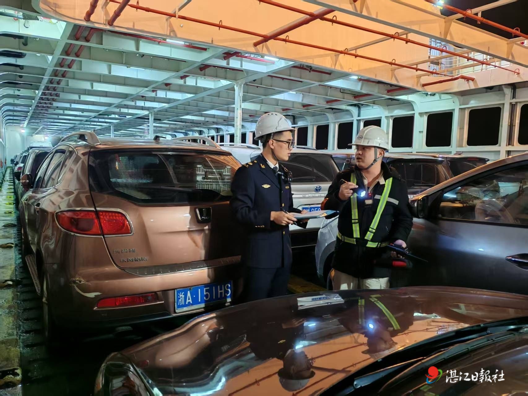 “新年快樂!您停穩車后一定要拉好手剎,然后到客艙休息。”“雙泰16”輪隨船海事人員葉建大一邊檢查車輛裝載情況,一邊提醒車主,臉上始終掛著熱情的笑容。他在船艙里忙碌地穿梭著,一次次確認車輛停放位置合理,提醒司機人車分離,并且檢查好系固綁扎,這個工作看似簡單,實則需要極大的耐心和細心。“這是我第二次在海上過年,第一次還是我在跑船時。作為執法人員和船員的角色和職責分工不同,但相同的都是對安全的堅守和對家人的思念,當我在海上看到萬家燈火通明時,內心感受到無比滿足與幸福。”葉建大說。