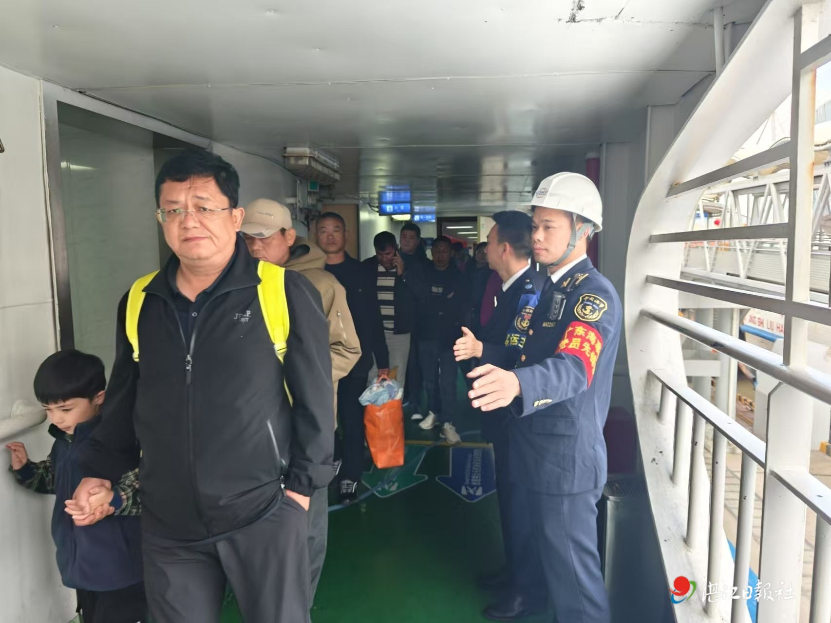隨船海事人員維護旅客登船秩序。