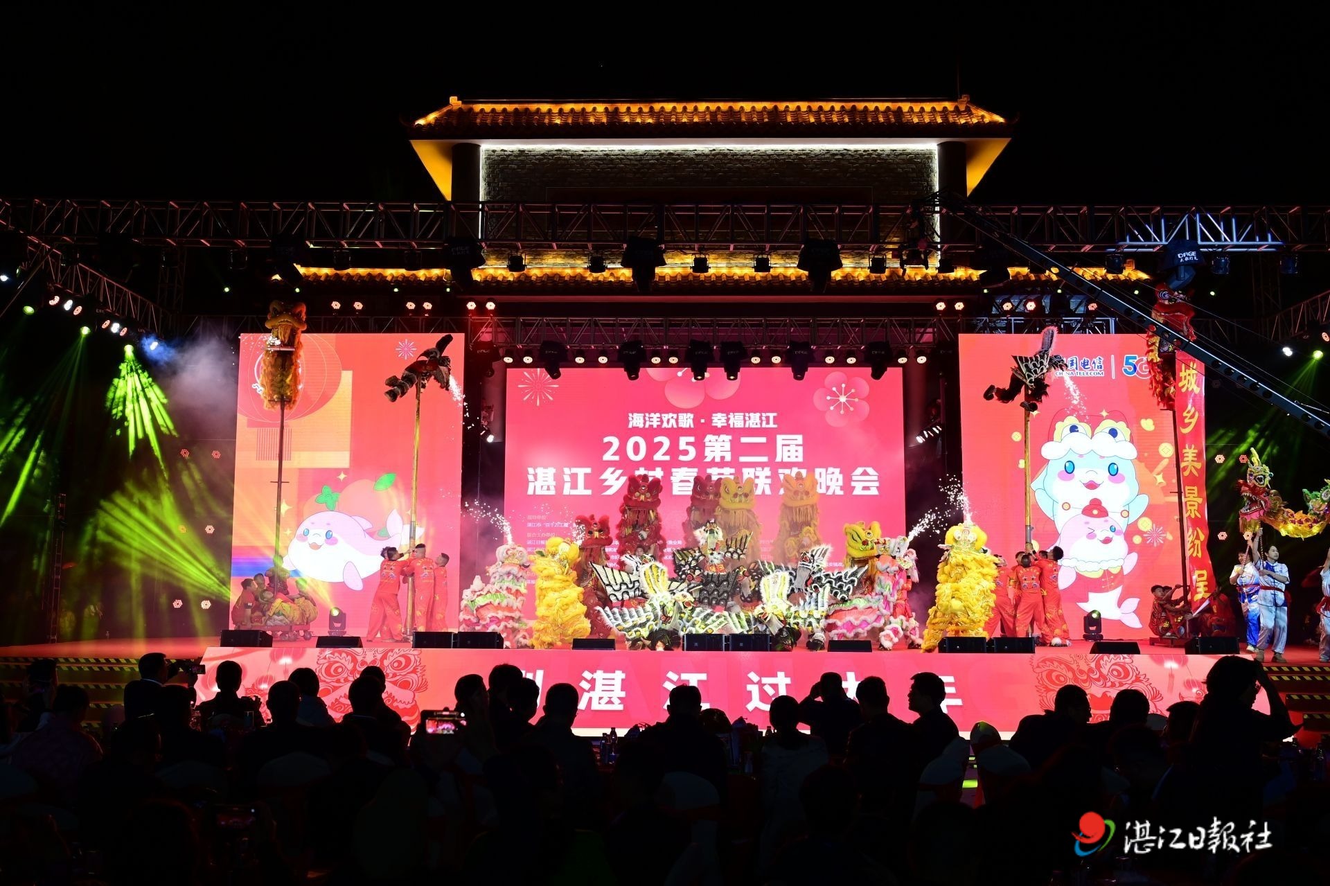 村晚開場節目分別是湛江市國武蔡李佛龍獅團表演的金鼓齊鳴開新運,湛江市國武蔡李佛龍獅團、遂溪縣殷屋舞鷹雄藝術團、赤坎調順網龍魚燈藝術團主演的龍獅雄鷹慶華年。編導這一節目的是文化人士朱衛國。他認為,這次多部門和企事業單位聯合組織村晚活動,為城鄉群眾辦了大好事。2024年,“春節——中國人慶祝傳統新年的社會實踐”列入聯合國教科文組織人類非物質文化遺產代表名錄。乙巳蛇年春節是“春節”申遺成功后的首個春節。村晚上表演的醒獅是國家級非遺項目,網龍是省級非遺項目,這次參演的100名演出隊員分別來自麻章、遂溪和赤坎三個鄉村。村民聚力展演,意義重大。