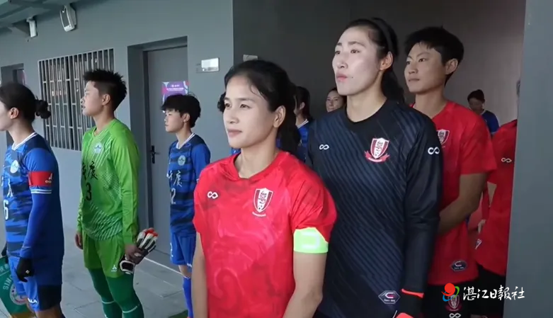 3月9日,湛江籍國腳陳巧珠(圖正中,穿紅衣、戴黃色隊長袖標者)作為廣東女足隊長出場,率隊在新賽季首戰(zhàn)中以1:1戰(zhàn)平重慶女足。