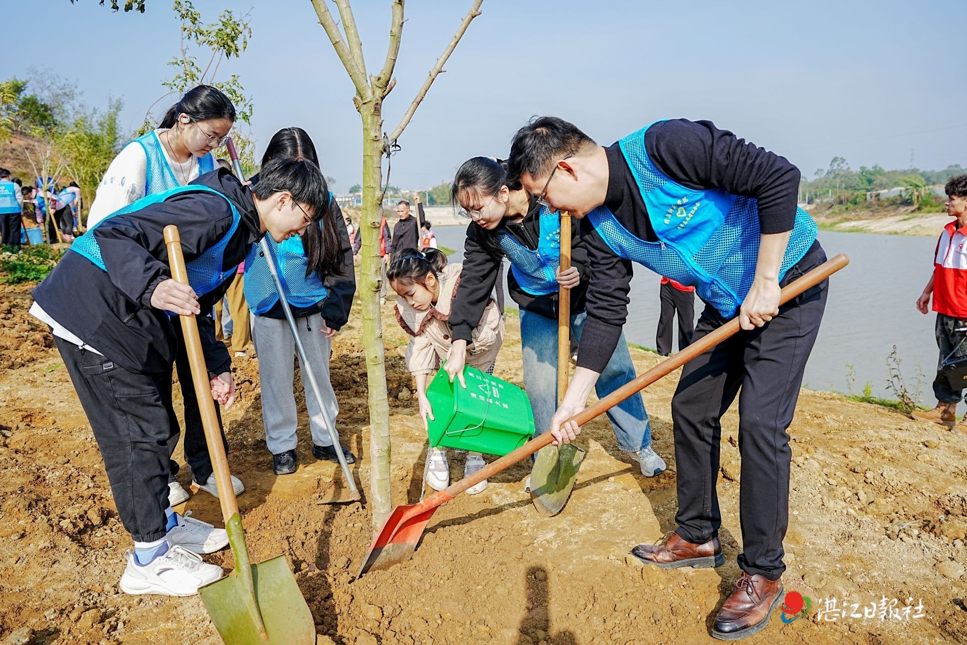 在第46個植樹節即將來臨之際,3月9日,嶺南師范學院把“師范紅”融入“生態綠”,組織近百名師生志愿者與廉江市70名結對學生及其家長,在廉江市安鋪鎮、河唇鎮共同開展了嶺師·湛江廉江新時代希望林建設活動,以實際行動推進教育賦能和綠美廣東生態建設。
