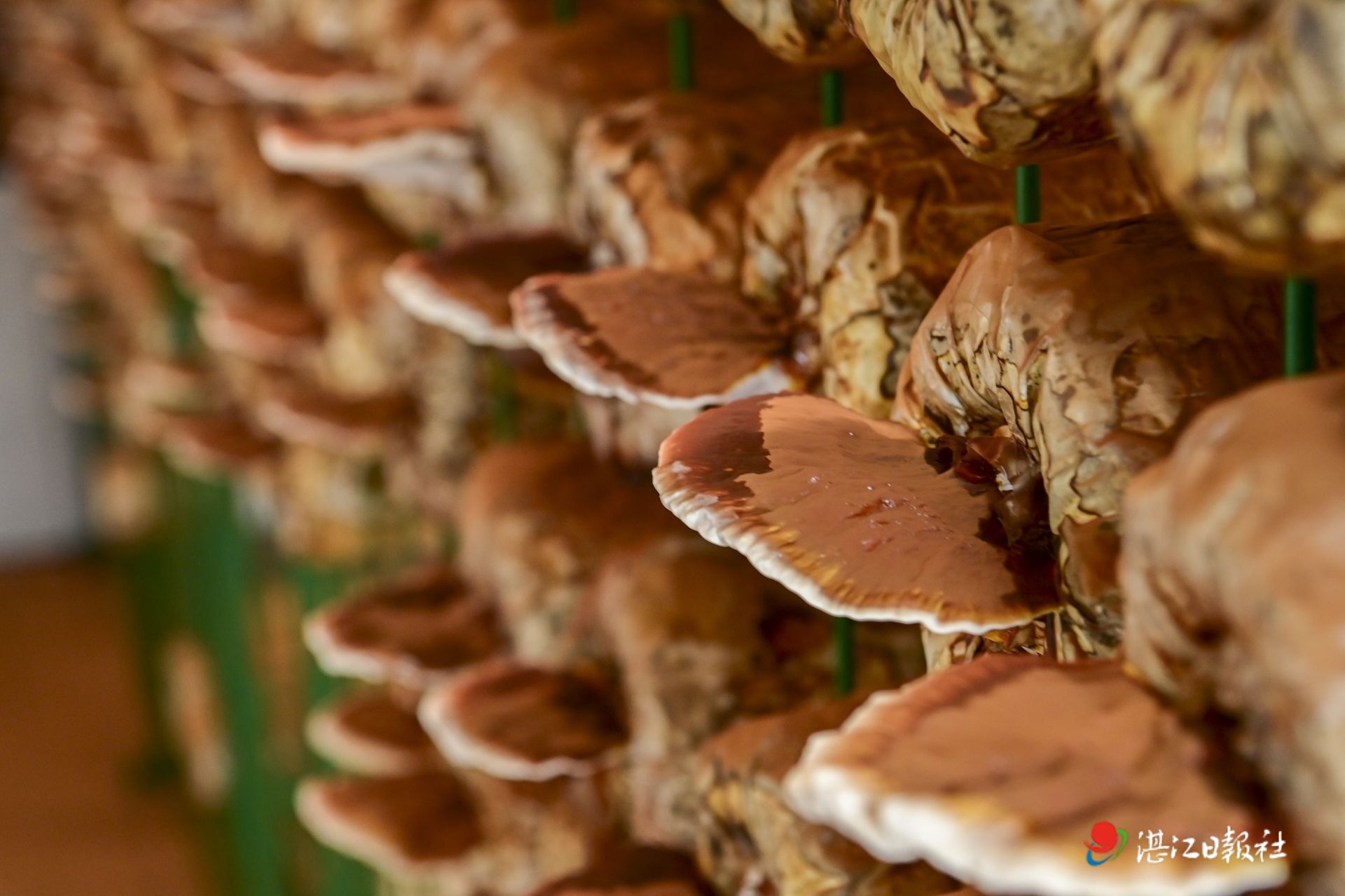 3月10日,記者走進遂溪縣界炮鎮珍稀藥食菌產業基地,一股清新的靈芝香味撲鼻而來。只見基地培植室內,靈芝大小各異、色澤金黃,仿若一把把撐開的“小傘”,滿是蓬勃生機。