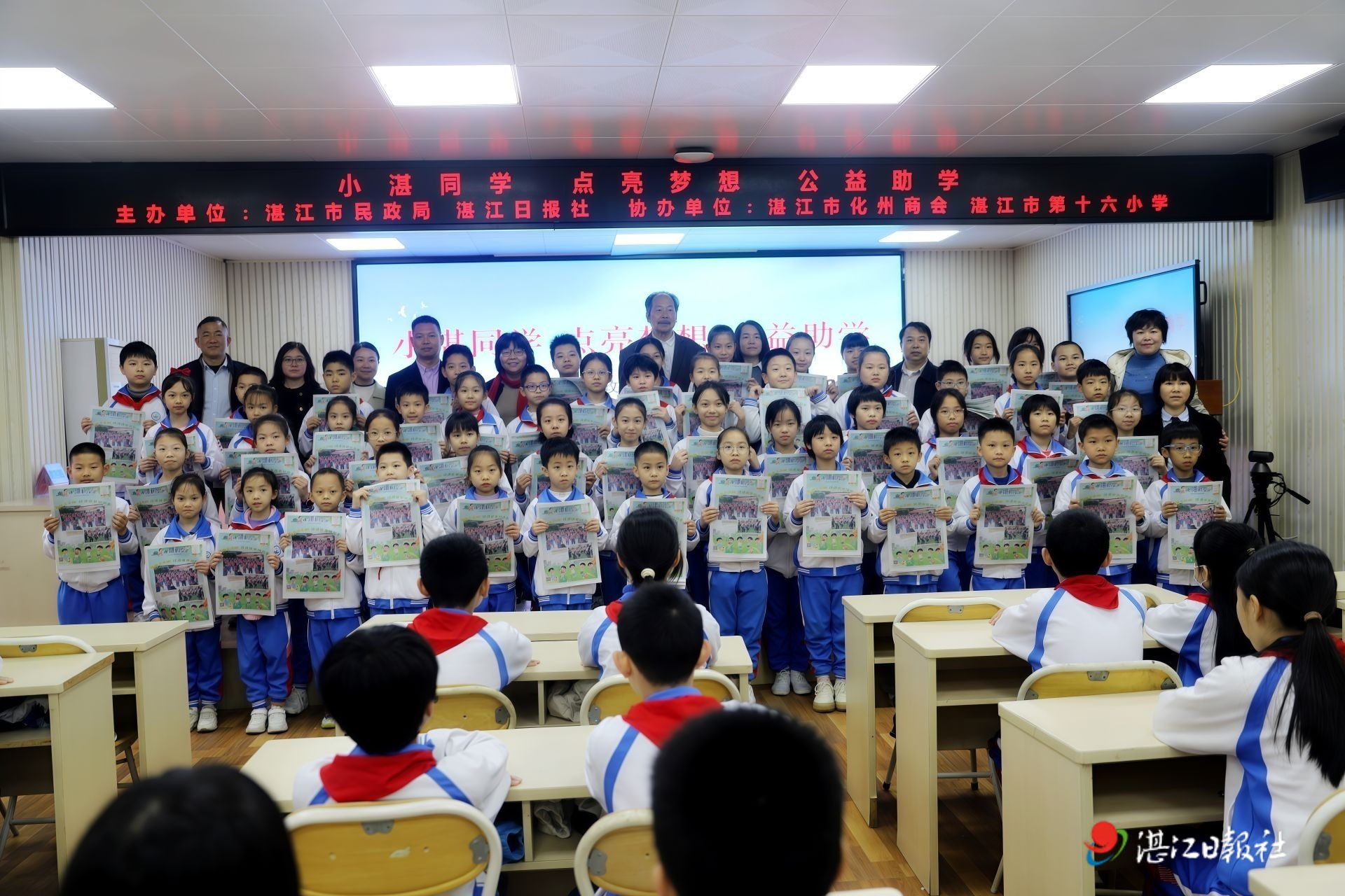 3月31日,由市民政局、湛江日報社聯合主辦的“點亮夢想 公益助學”活動在市第十六小學舉辦,共同見證湛江市化州商會為學校慷慨捐贈為期一年、每期50份的《小湛同學》。