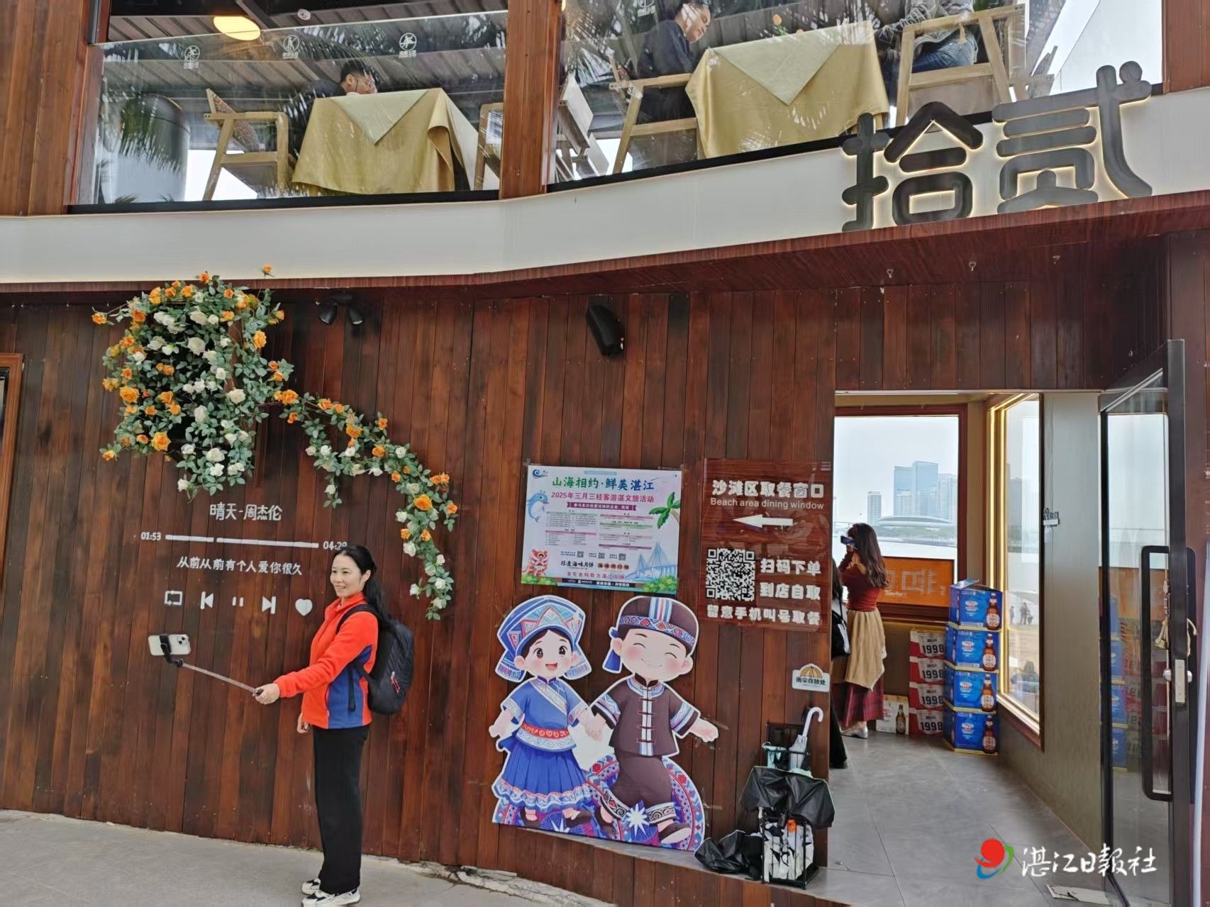 位于赤坎金沙灣的“山海相約·鮮美湛江”2025年三月三桂客游湛文旅活動宣傳海報和標識。