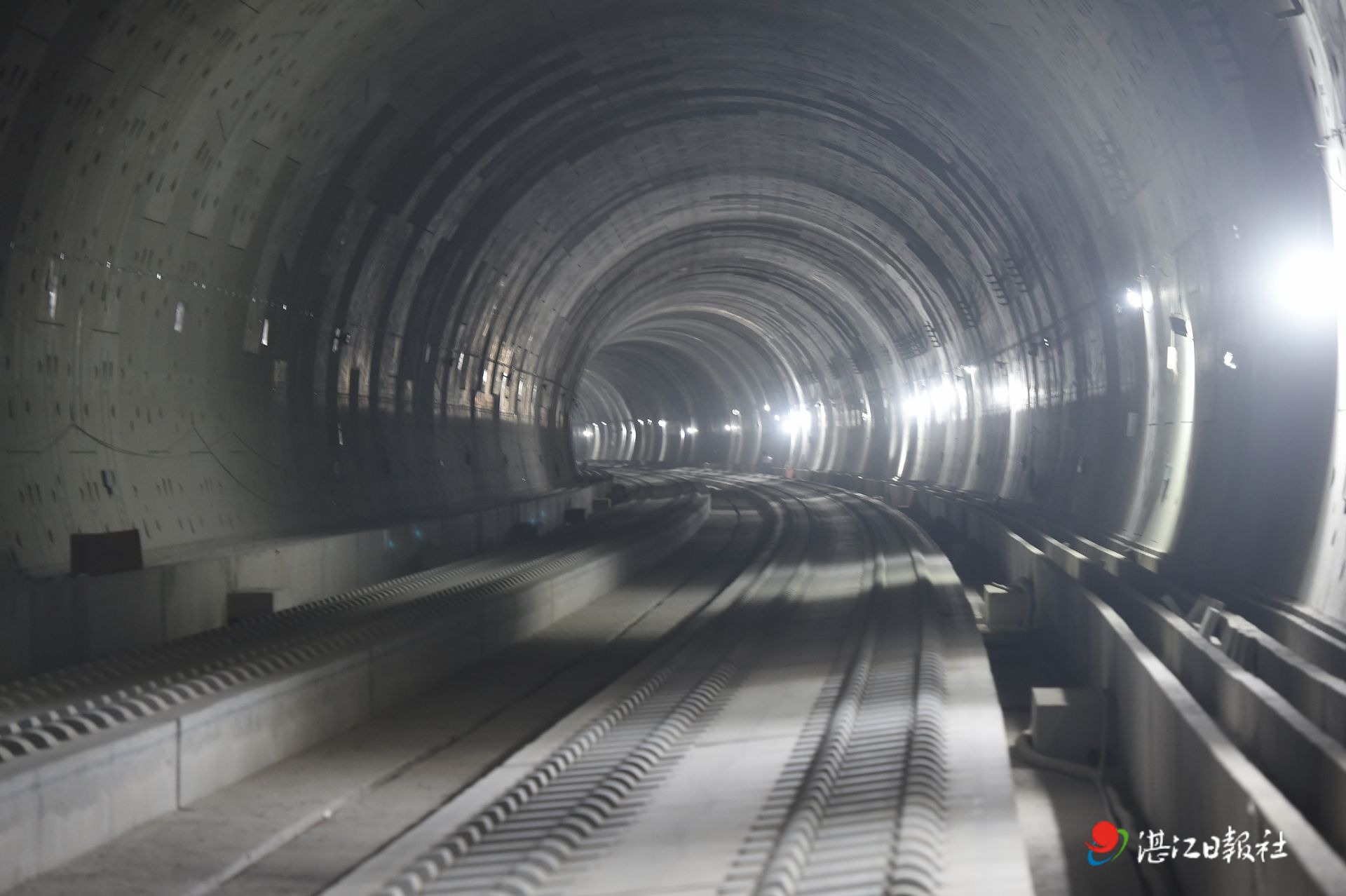 已鋪好無砟軌道施工的廣湛高鐵湛江灣海底隧道。