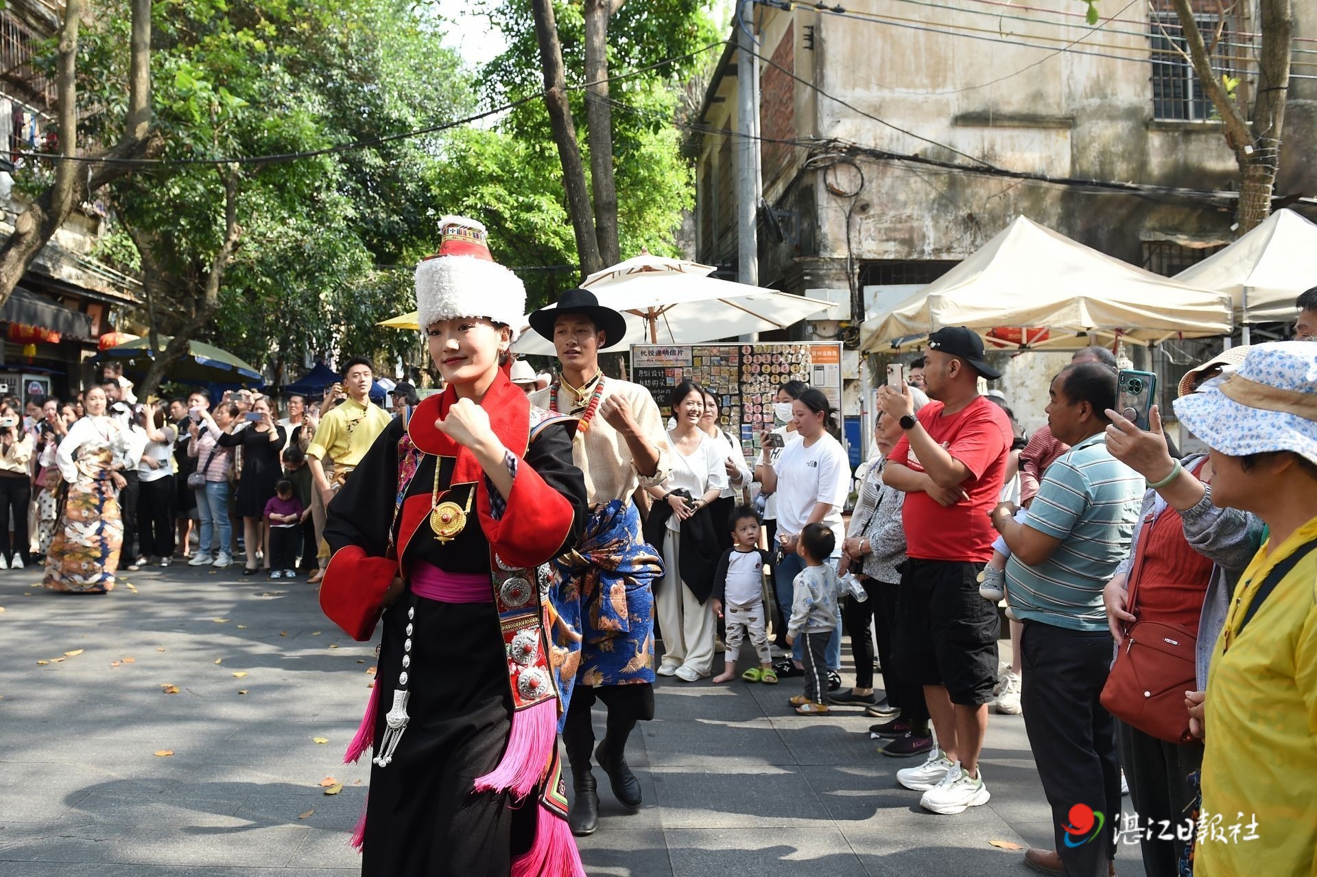 來自青海省的舞蹈人員在赤坎老街載歌載舞,為游客和市民表演。