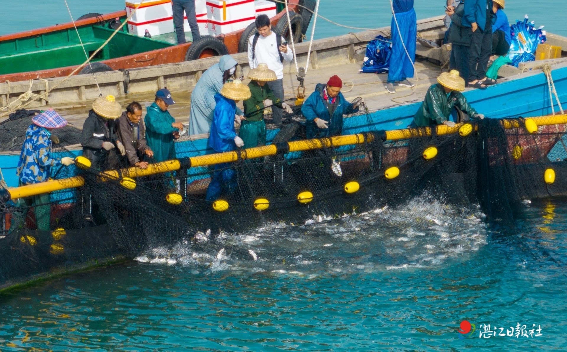 4月14日,雷州覃斗鎮流沙灣海域,南雁海洋牧場的金鯧魚豐收。
