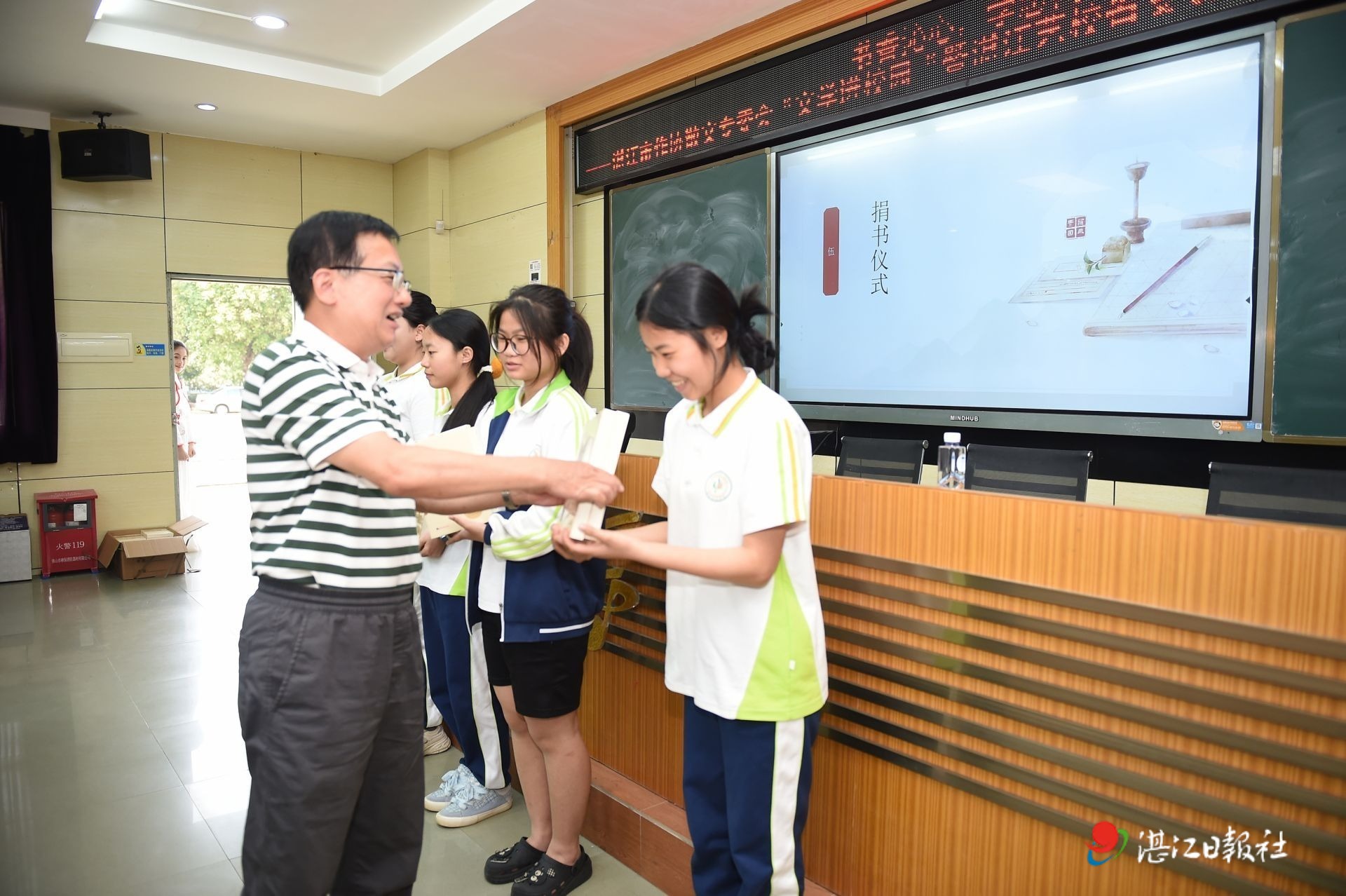 陳通代表湛江市作協(xié)向湛江藝校捐贈反映湛江市重大建設(shè)成就的《奮進(jìn)湛江》一書數(shù)十冊。市作協(xié)散文專委會送文學(xué)進(jìn)校園,營造校園“共讀共成長”的文化氛圍。