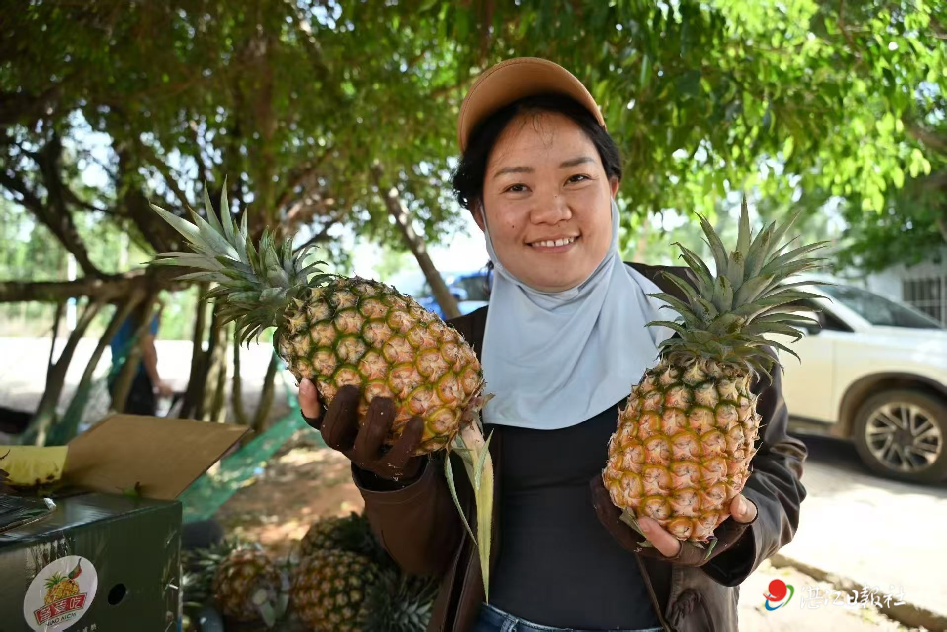 陽光下的果園里,工人們忙碌著采摘,每個鳳梨都被套上了水果網套。“給鳳梨套網套,雖然增加很多成本,但可減少太陽暴曬和雨水沖擊,同時也可減少病蟲害,保證果子的品質。”曹愛麗說,雷州土地遼闊,日照時間長,十分適宜種植南亞熱帶水果。她表示,正逐漸引導群眾充分利用當地土地自然優勢,大力發展鳳梨種植業,增加經濟收入。