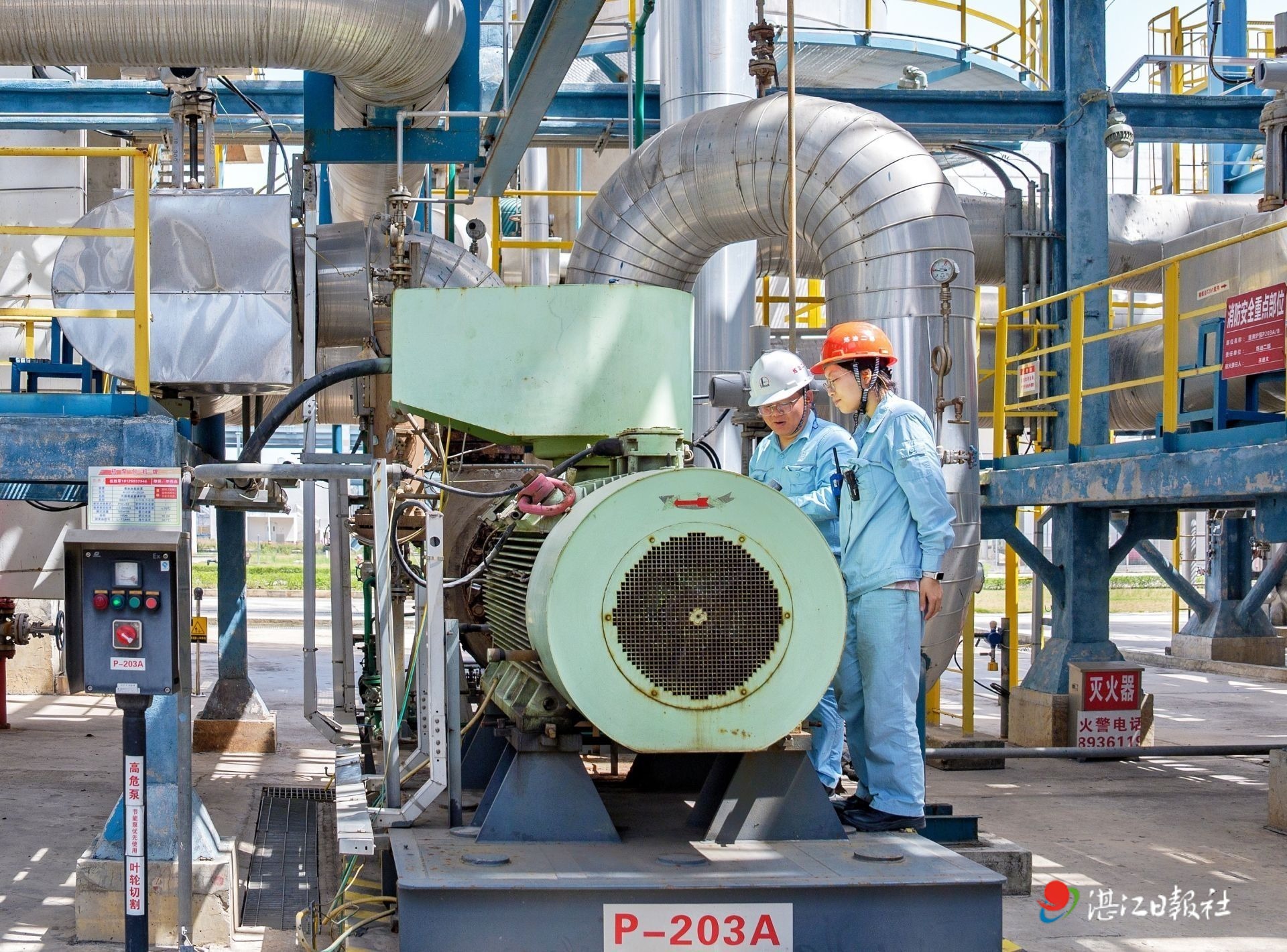 中科煉化航煤加氫裝置員工檢查機泵情況,確保裝置平穩生產。