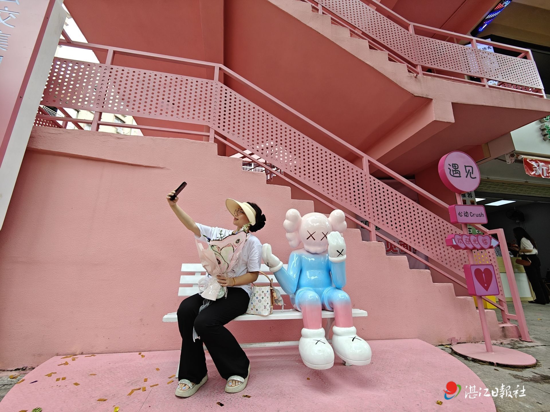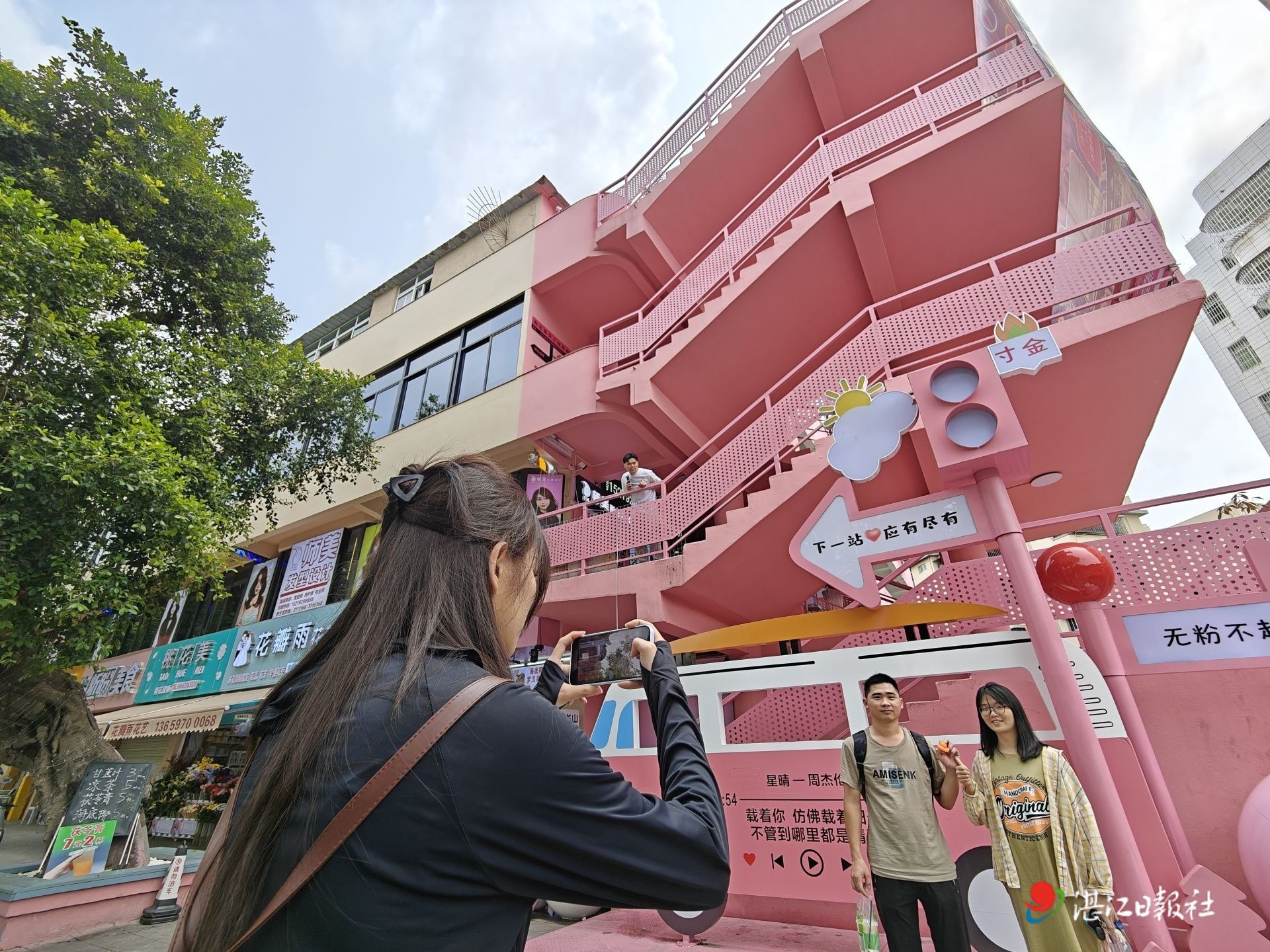 4月28日,湛江市赤坎區寸金文旅商業街正式揭牌運營。這里以舊公交站為依托,經改造后變身粉色主題網紅打卡地,吸引眾多市民游客前來體驗。