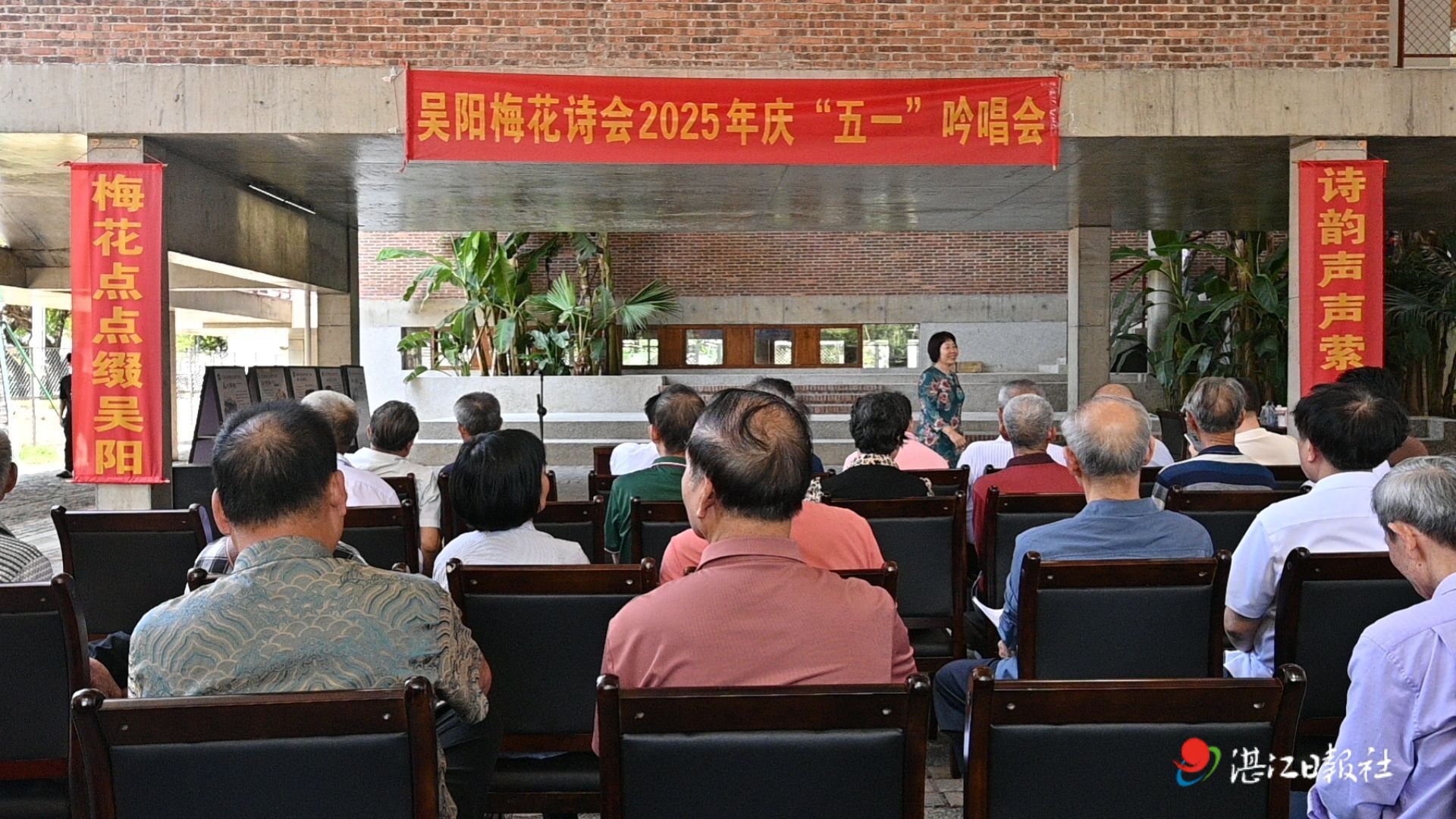 活動現場,吳陽梅花詩會在會長林紹楷的帶領下,多位吟誦者輪番登場,以吳陽話特有的古韻音調,抑揚頓挫地吟唱一首首經典唐詩宋詞或自己精心創作的古詩。那或激昂、或婉轉、或悠揚的吟誦聲,將詩詞中的意境與情感展現得淋漓盡致。臺下的觀眾們沉浸其中,時而閉目聆聽,時而輕聲跟誦。吳陽話又稱 “伝語”,俗稱 “吳川骨”“土白話”,其最大特點便是古味濃重。在發音上,吳陽話平平仄仄極為協調,在全國方言中獨具特色。當傳統詩詞遇上吳陽話,獨特的音韻讓詩詞的節奏和情感表達,得到更為淋漓盡致。