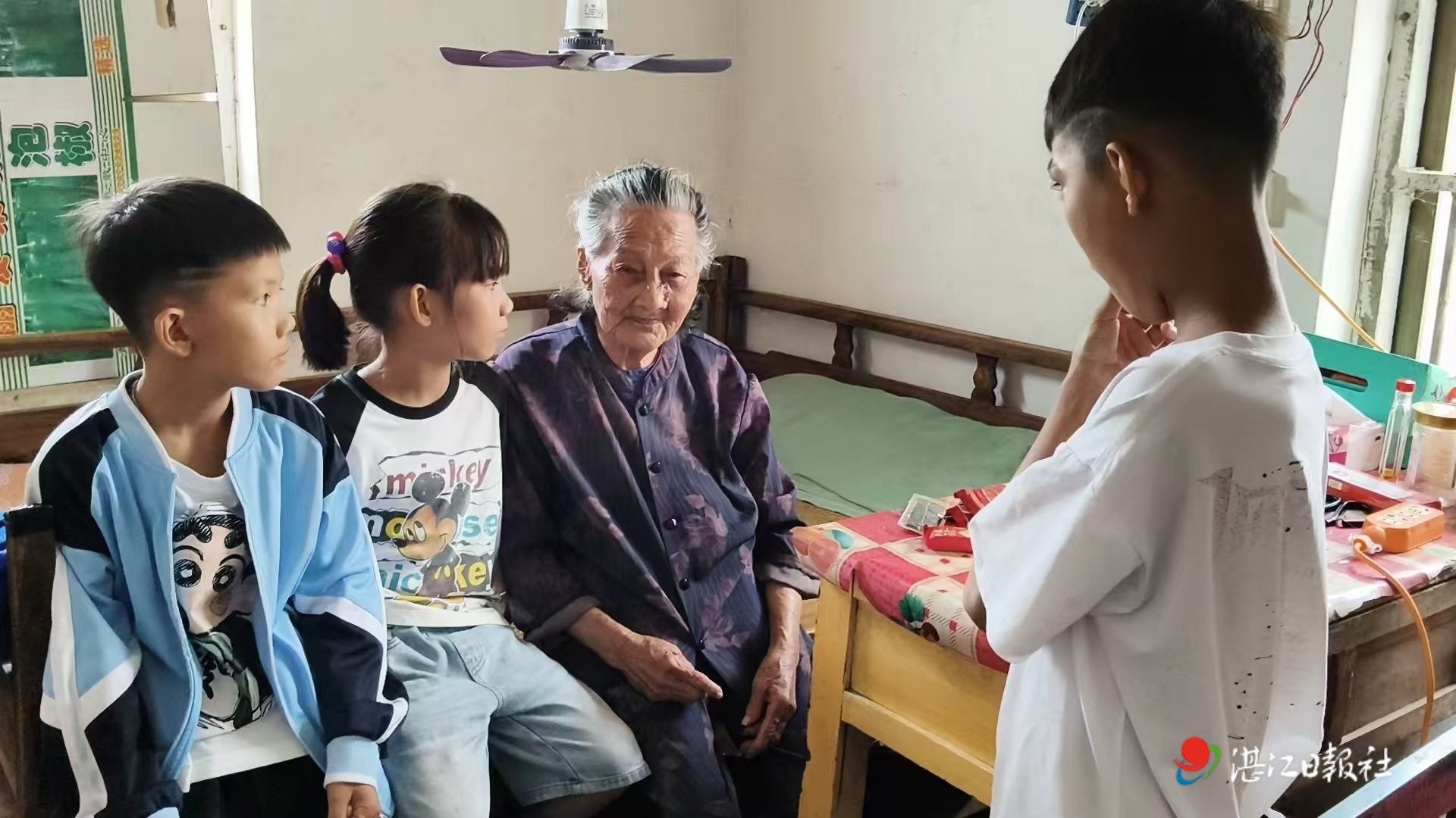 曾孫們放學(xué)后圍在蘇方興身邊。
