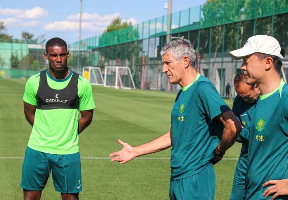 塞蒂恩(左)在聚加基地。圖片來自北京國安足球俱樂部