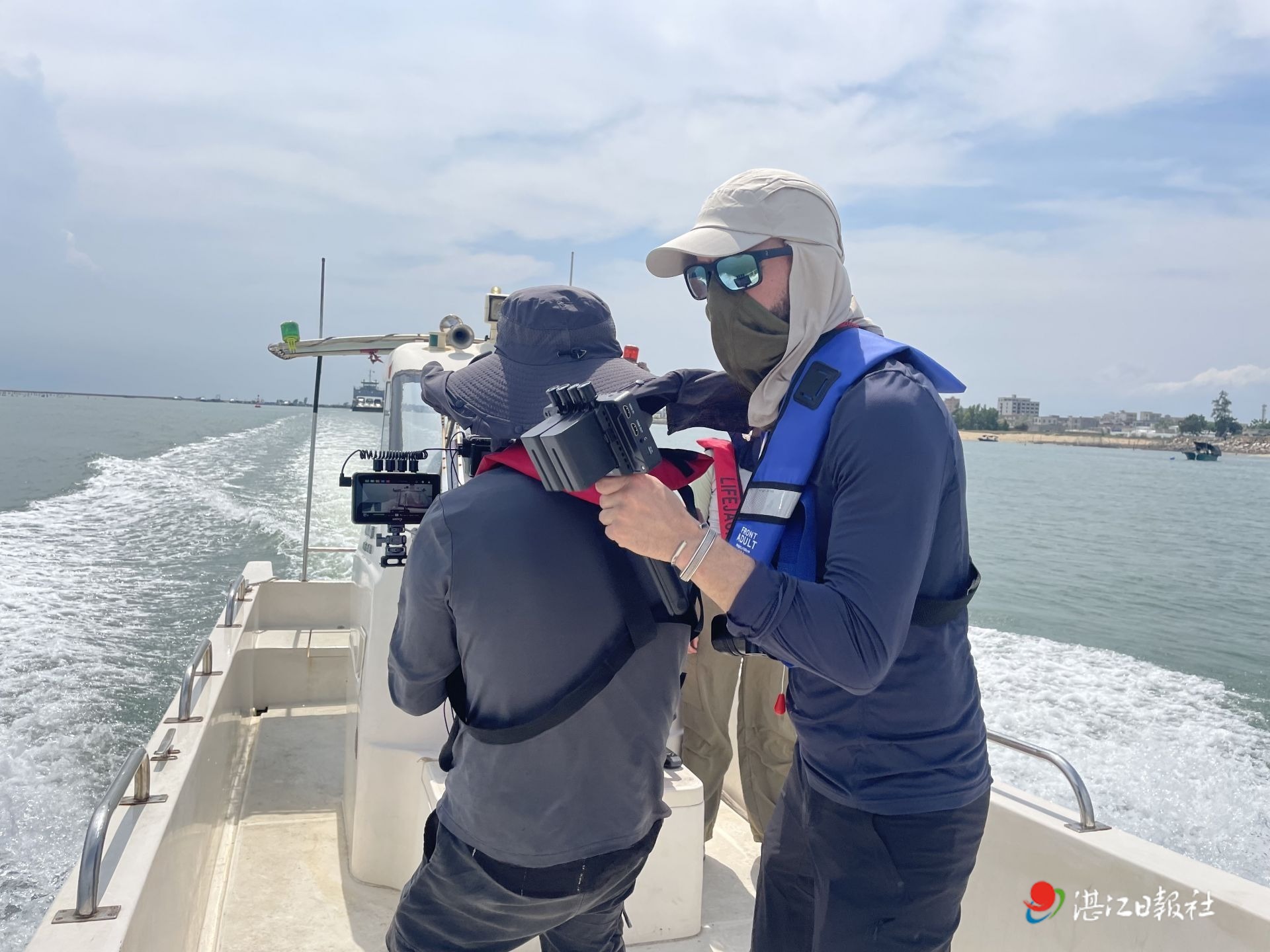 法國拍攝團隊在雷州灣海域拍攝中華白海豚。