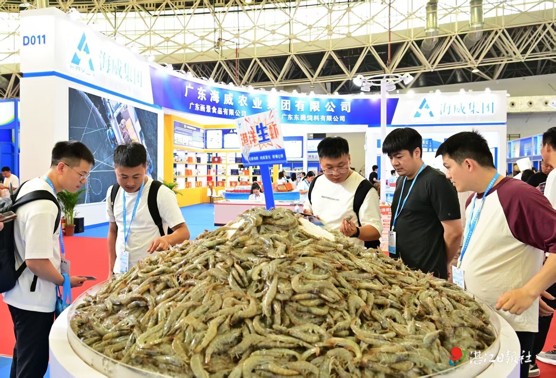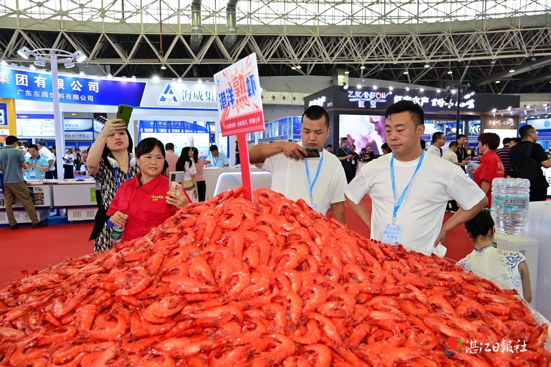 “大家都來嘗一嘗,這是我們湛江的特色美食。”在廣東恒興集團展位,工作人員熱情邀請觀眾品嘗應節新品荔枝蝦仁。水博會上蝦類產品毫無疑問構成了現場最廣泛的產品基底。作為“中國對蝦之都”,湛江對蝦產業年產值達110多億元,產業鏈帶動就業超100萬人。