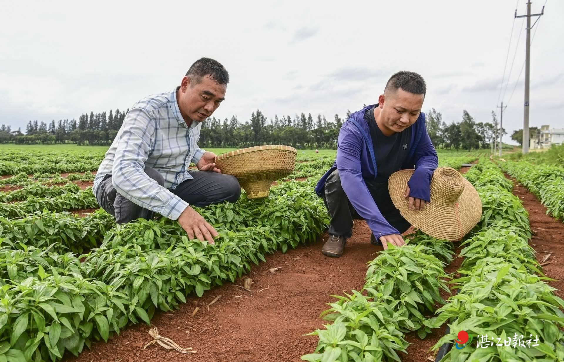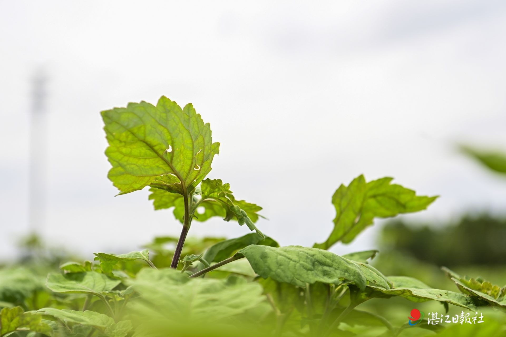 6月20日正午,遂溪縣烏塘鎮(zhèn)湛川村廣藿香種植基地內(nèi),藥農(nóng)黃民軍彎下腰,仔細(xì)查看廣藿香苗生長情況。