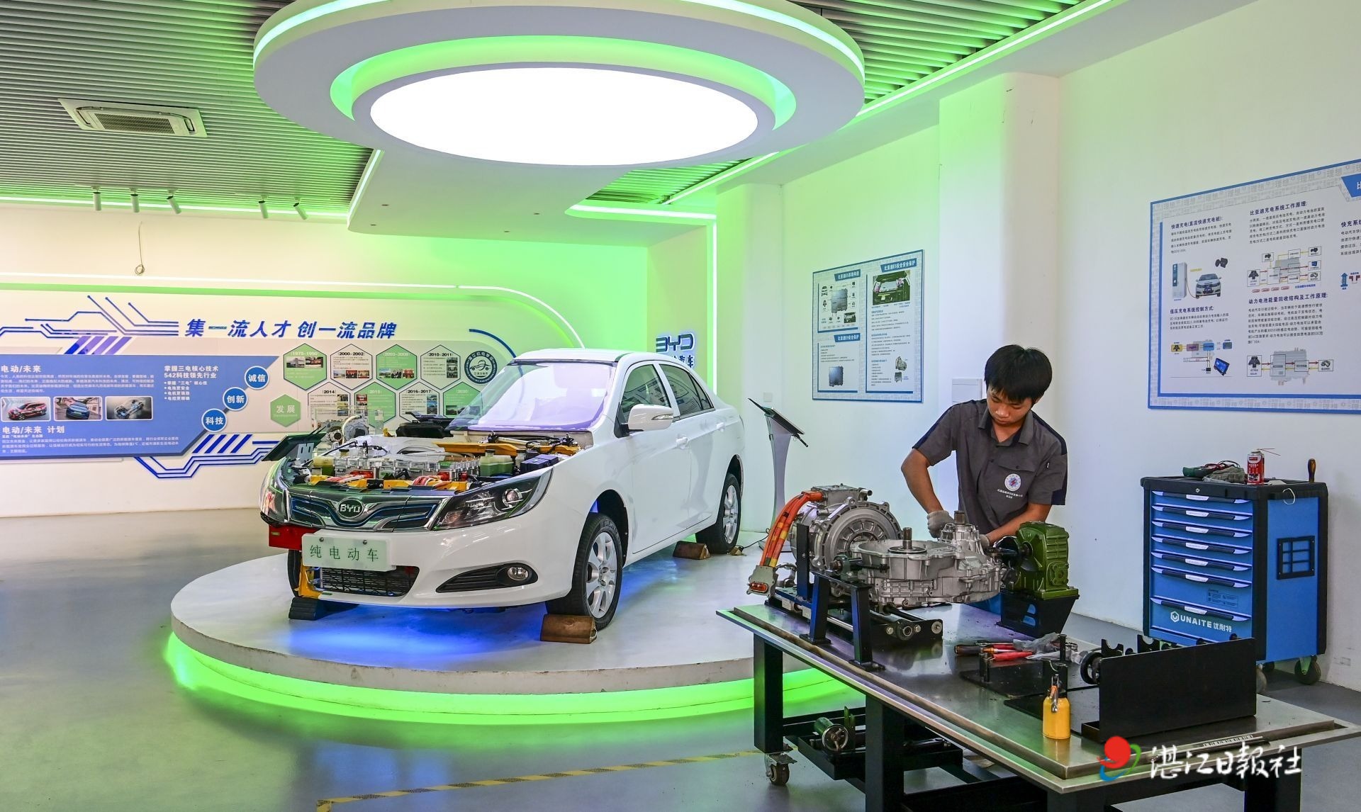 湛江機(jī)電學(xué)校與深圳比亞迪汽車工業(yè)有限公司開設(shè)“比亞迪新能源汽車”冠名訂單班,企業(yè)捐贈(zèng)新能源汽車教學(xué)設(shè)備,并派遣技術(shù)人員參與實(shí)訓(xùn)指導(dǎo),在課程設(shè)置上,還根據(jù)企業(yè)需求進(jìn)行專門的新能源汽車技術(shù)和崗前培訓(xùn),以確保學(xué)生畢業(yè)后能直接勝任企業(yè)工作崗位?!拔覀儗W(xué)的知識(shí)偏向于實(shí)用性,理論課我們了解機(jī)器怎么運(yùn)轉(zhuǎn)的,然后經(jīng)過充分的實(shí)踐,會(huì)對(duì)機(jī)器更加熟悉?!闭趯?shí)習(xí)的2023級(jí)學(xué)生陳濱迪表示,在學(xué)校學(xué)習(xí)的鈑金、噴漆、汽車檢查維修等技術(shù)能很好地滿足工作需求。