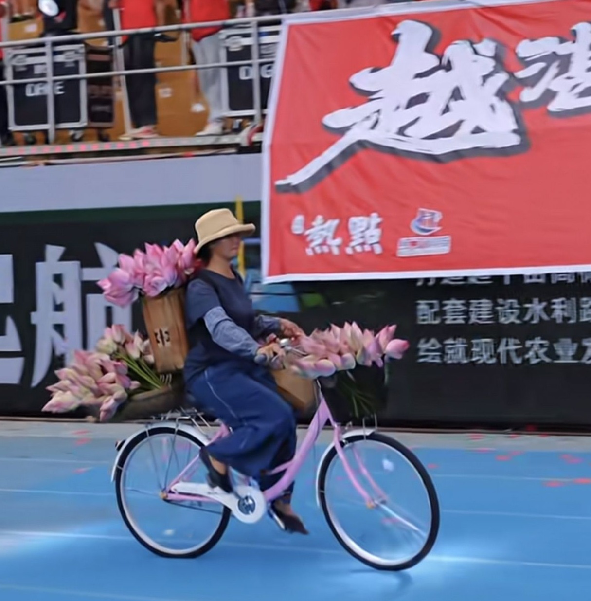 7月6日,網(wǎng)上爆火的湛江吳川“荷花姑娘”現(xiàn)身佛山“西甲”足球聯(lián)賽現(xiàn)場(chǎng)。她身著靛藍(lán)布衣,騎著一輛標(biāo)志性的粉色自行車,載著滿簍荷花,也載著對(duì)生活的熱愛與希望。作為足球迷,她跨越近400公里,為家鄉(xiāng)球隊(duì)湛江熱點(diǎn)隊(duì)和吳川青年足球隊(duì)送上深情祝福。