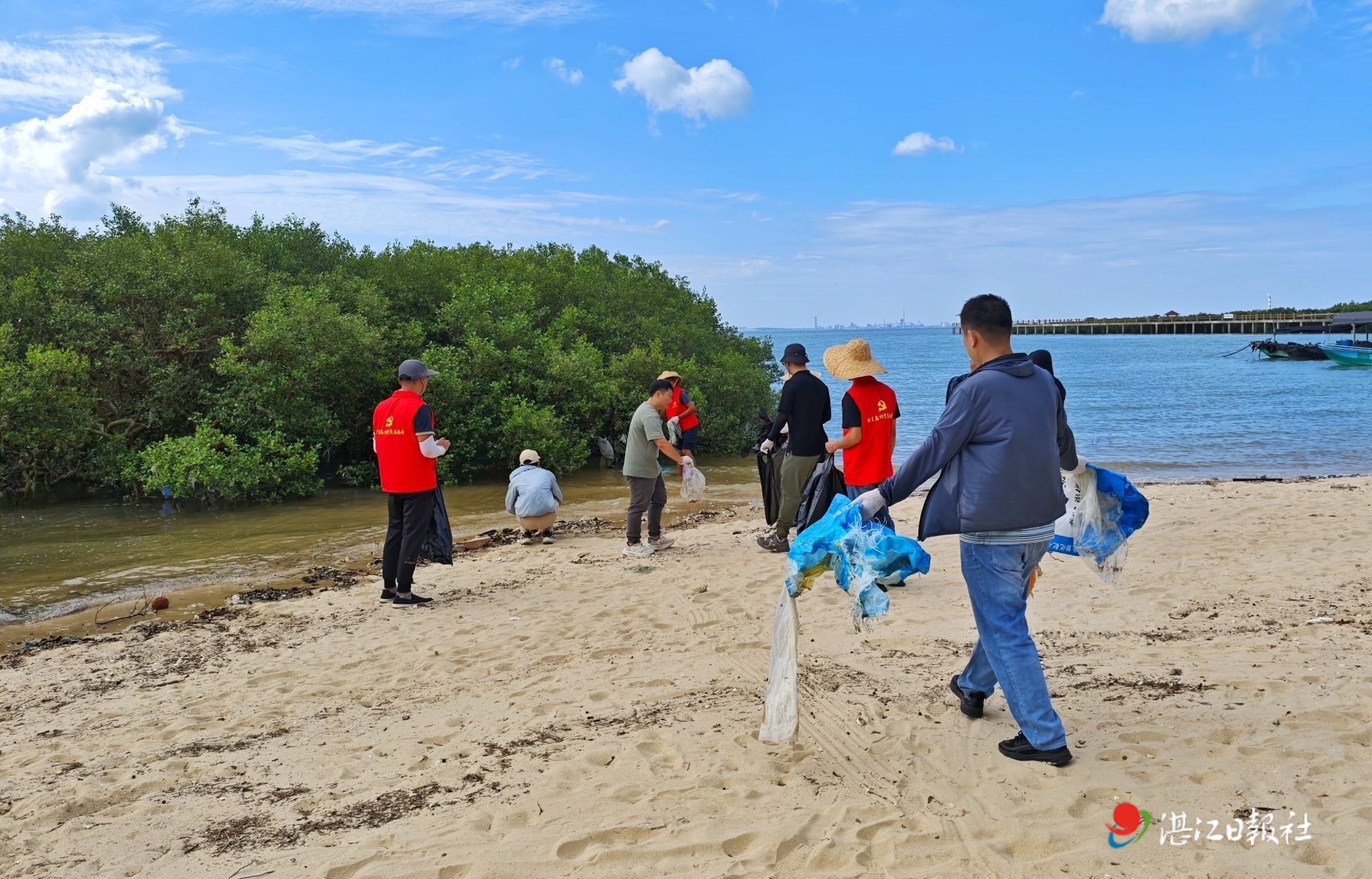 7月8日,霞山區愛國街道聯合區紀委監委、區審計局、區文旅體局等掛點單位,組建成一支愛國街道“百千萬工程”志愿服務隊,在特呈島紅樹林沿海灘涂開展凈灘志愿活動,全力推動特呈島村人居環境整治取得切實成效。